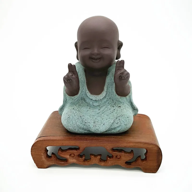 Posągi buddy mały mnich kolorowy piasek ceramiczny klub domowy geomantyczna dekoracja fioletowy piasek figurki herbata zwierzę domowe