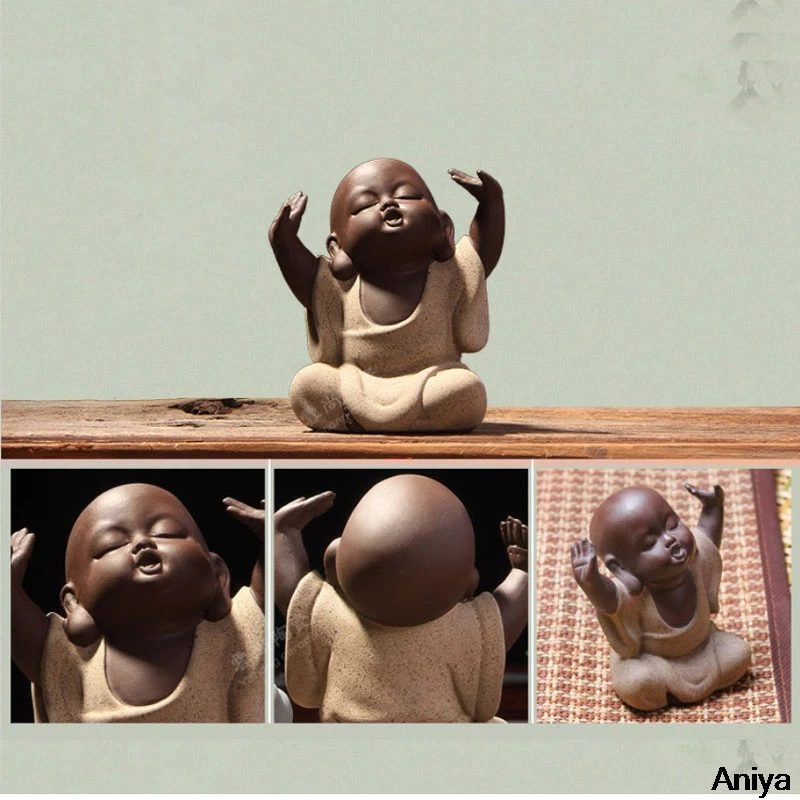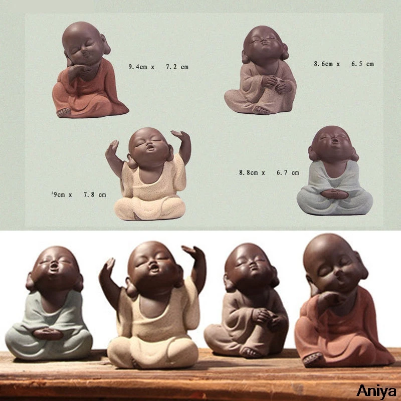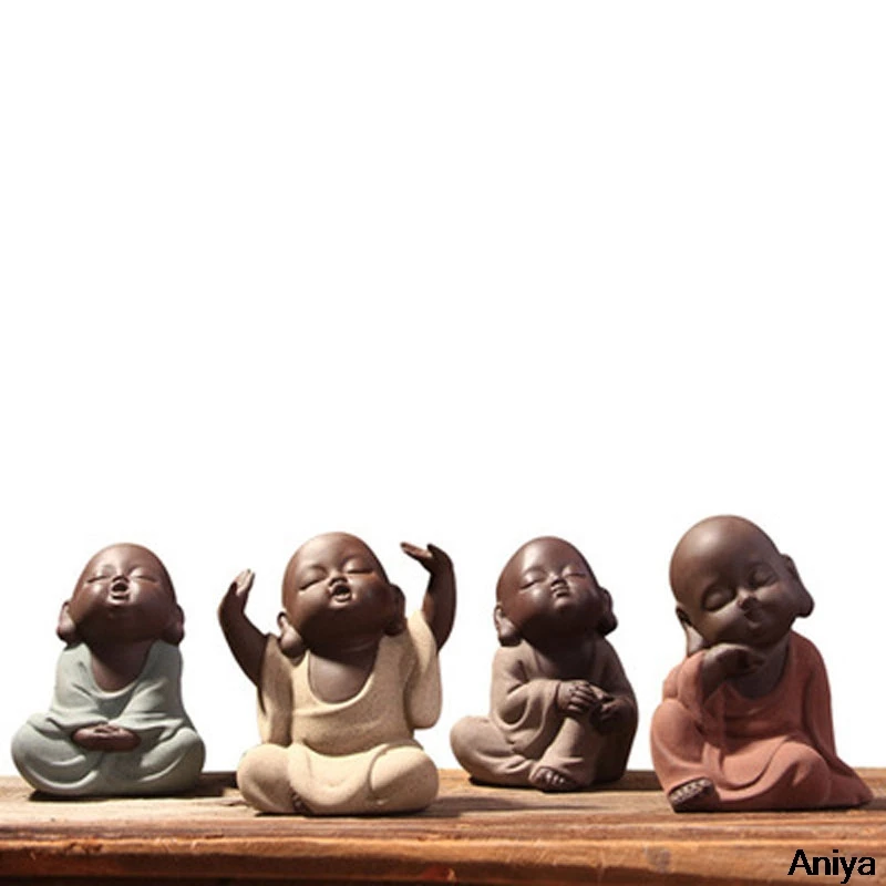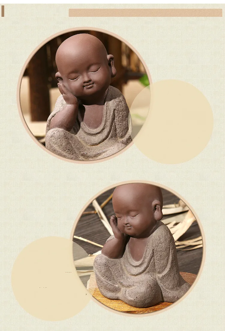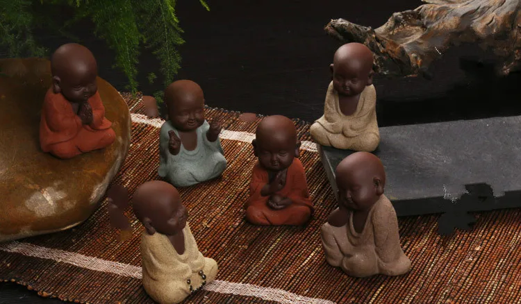 Posągi buddy mały mnich kolorowy piasek sztuka ceramiczna strona główna klub geomantyczna dekoracja figurka herbata domowe zwierzę akcesoria dekoracyjne