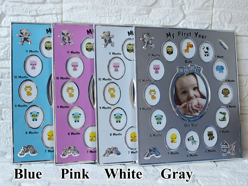 Prezent dla dziecka mój pierwszy rok 1 do 12 miesięcy ramka na zdjęcia dzieci Keepsake ramy metalowe Home Decor rekord wzrostu dziecka dostosowane zdjęcia