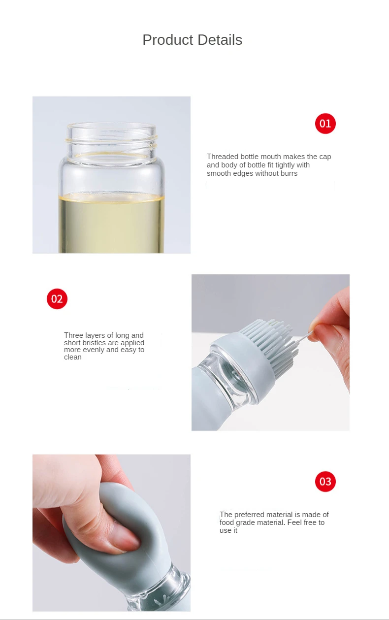 Przenośna szklana butelka na olej z szczotka silikonowa Grill szczotka do olejowania kuchnia gotowanie pieczenia BBQ dozownik oleju szczotki narzędzia Accessorie