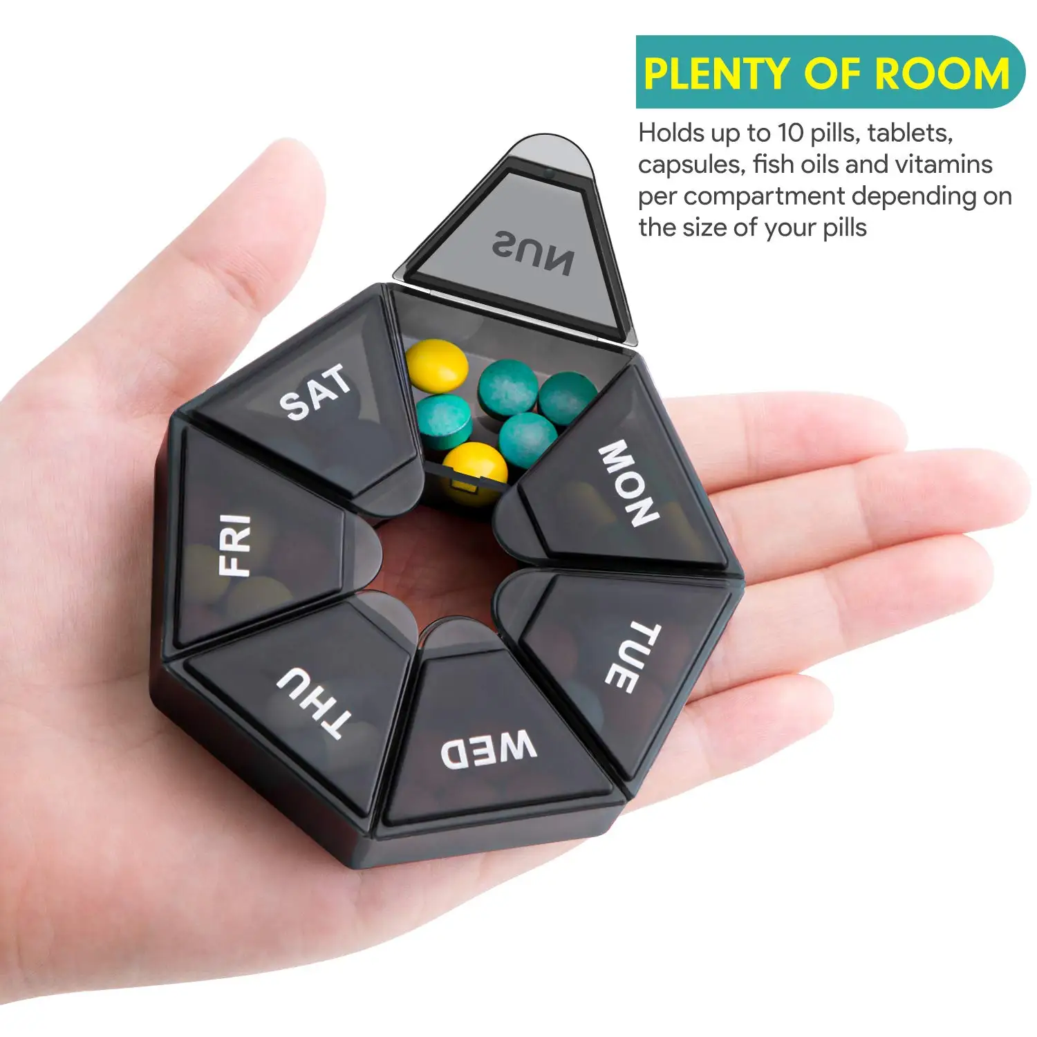 Łatwy w użyciu: łatwy do otwarcia nawet w przypadku zapalenia stawów, futerał na pigułki pozostanie zamknięty po zamknięciu i bezpiecznie zatrzaśnij, aby twoje pigułki były bezpieczne