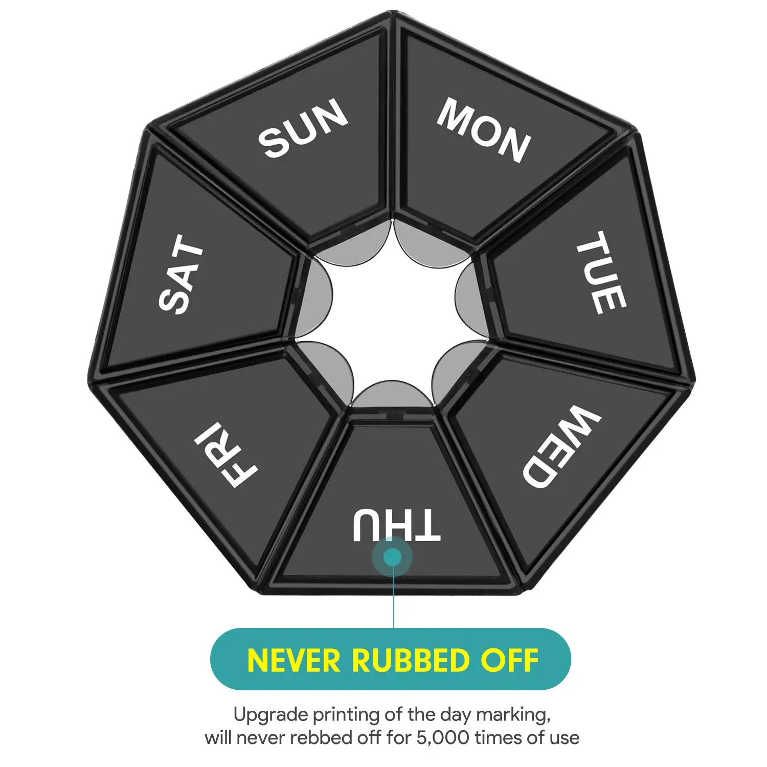 Rzucające się w oczy drukowanie: większe drukowanie dni tygodnia ułatwia rozróżnianie, niech dozownik tabletek zapamięta czas dla ciebie zamiast siebie i ulepszone stoisko drukujące 10 lat