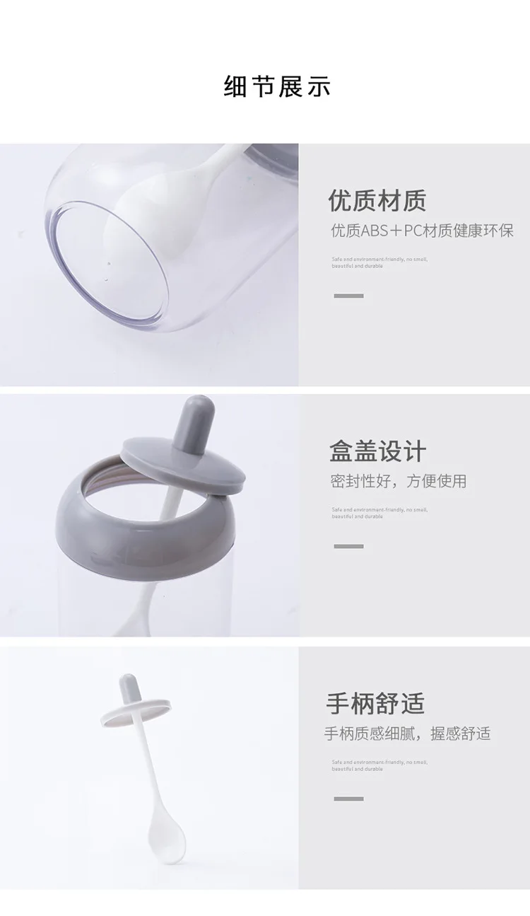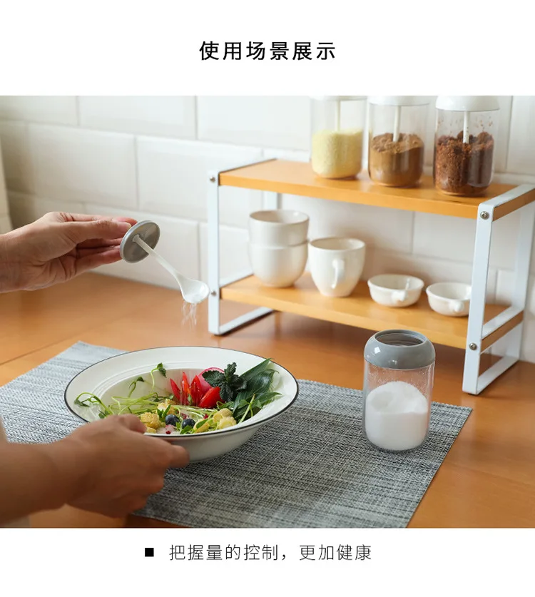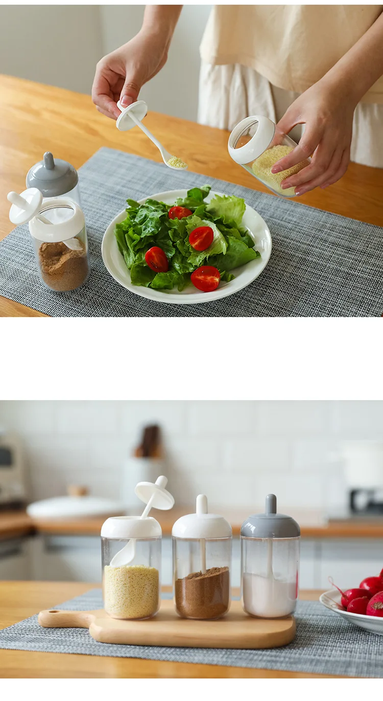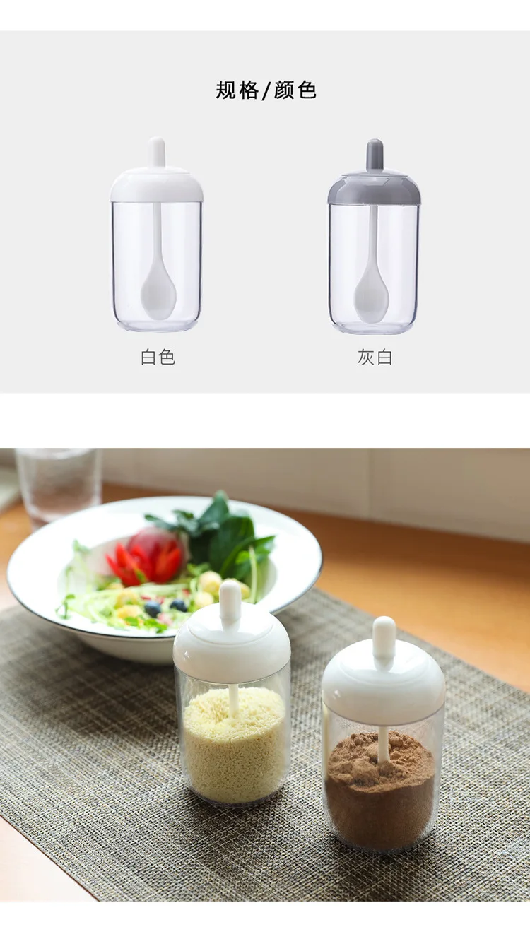 Przezroczyste przybory kuchenne pudełko do przypraw do soli cukier papryka w proszku plastikowa butelka do sezonowania z łyżeczką i pokrywką zintegrowana