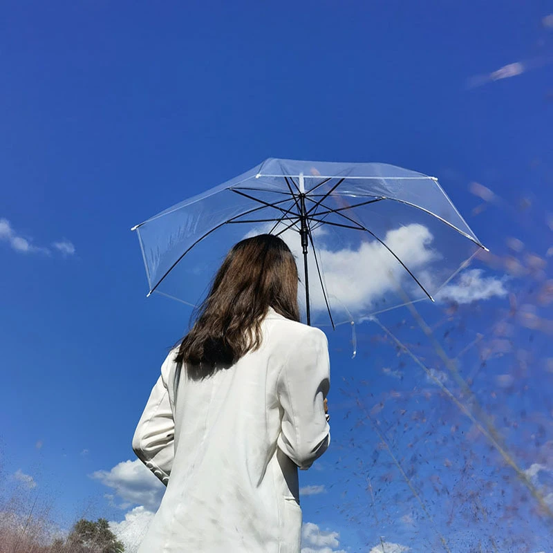 Przezroczysty parasol przeciwdeszczowy PVC deszcz kopuła bańka deszcz parasol przeciwsłoneczny wesele parasole długi uchwyt prosty kij parasol
