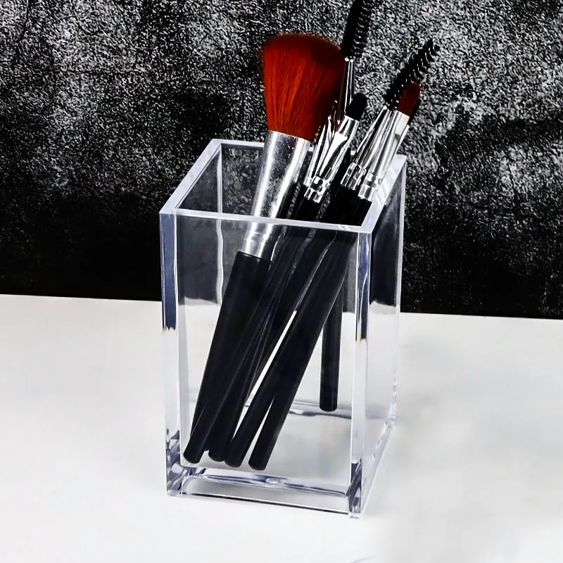 Przezroczysty stojak na pędzle do makijażu organizator plastikowy uchwyt na długopisy biurko stół pudełko do przechowywania kosmetyków akrylowe pudełko na biżuterię pojemnik