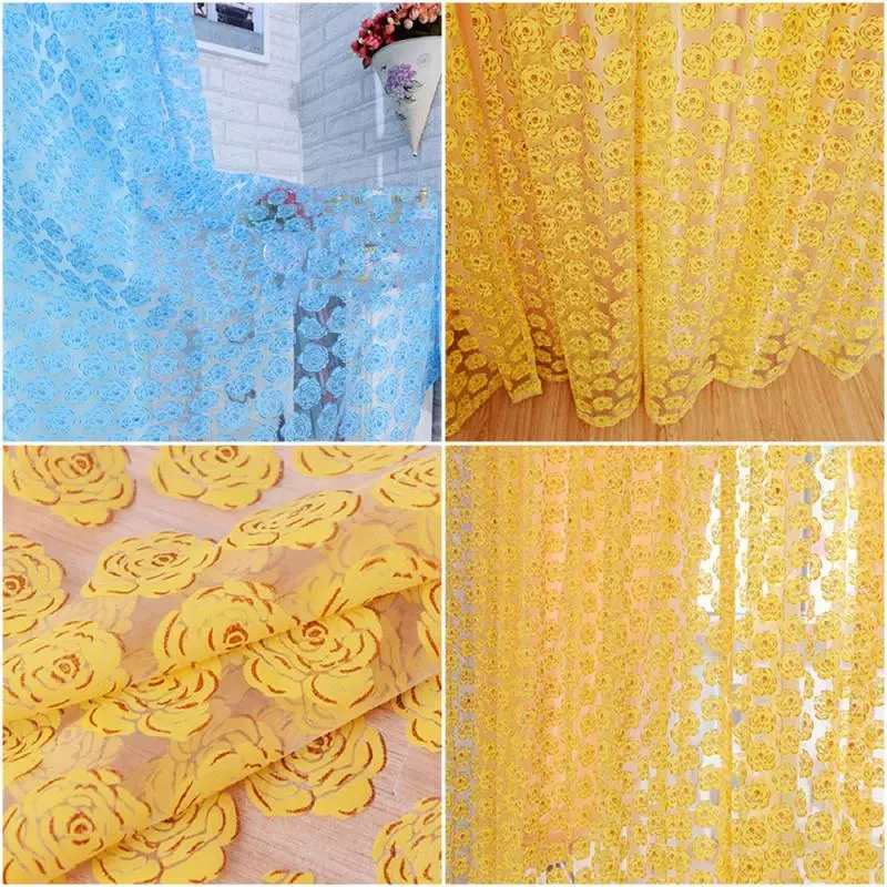 Romantyczna róża kurtyna tiul półprzezroczysty nosić pręt łatwe do czyszczenia salon podłoga w pomieszczeniu do sufitu okna strona główna estetyczna dekoracja TSM1