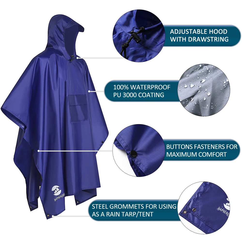 SaphiRose 3 w 1 Poncho przeciwdeszczowe z kapturem wodoodporna kurtka przeciwdeszczowa dla mężczyzn kobiety dorośli namiot na zewnątrz Mat