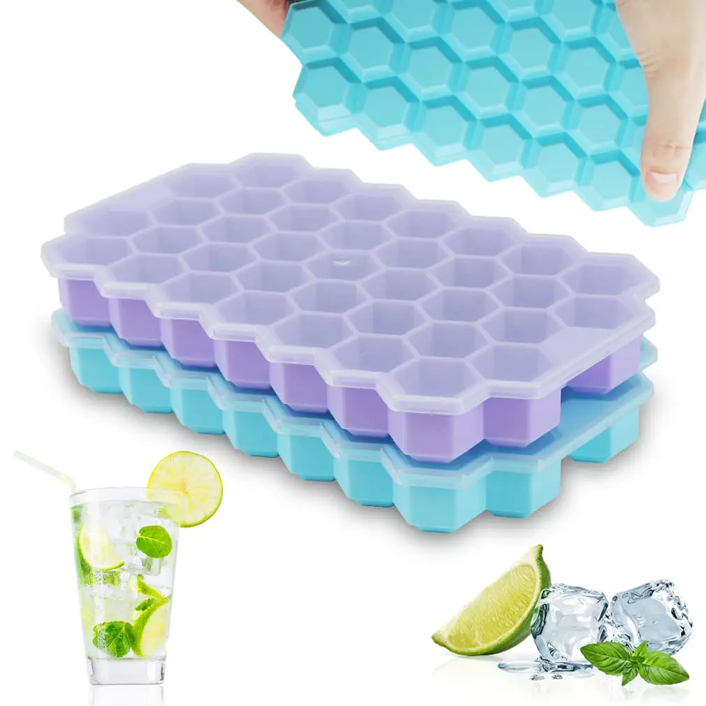 Silikonowy kształt plastra miodu taca na kostki lodu silikonowa kostkarka do lodu formy z pokrywkami do lodów Party whisky koktajl zimny napój