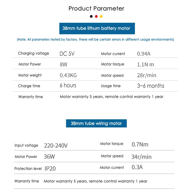 Silnik rolety CASAYA 100-240V silnik rurowy AC i DC odpowiedni do baterii litowej o średnicy 38mm