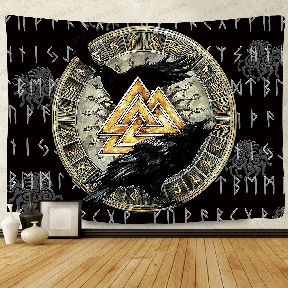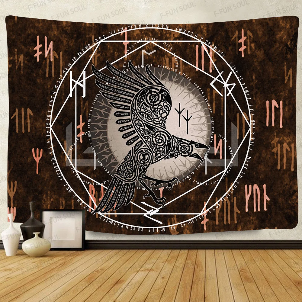 Simsant Viking Raven Tapestry tajemniczy Viking medytacja psychodeliczne runy ściana artystyczna wiszące gobeliny na wystrój salonu