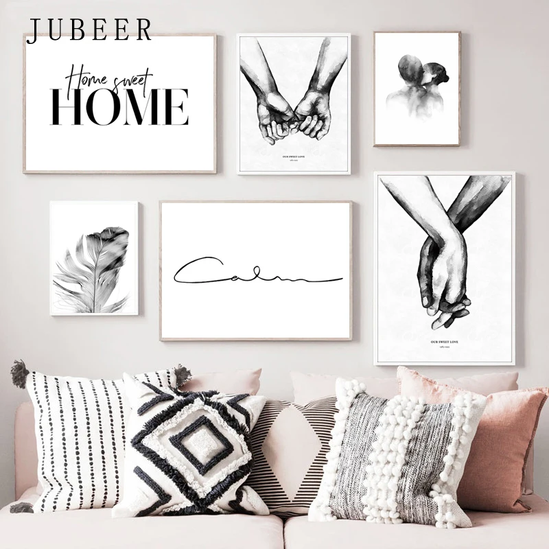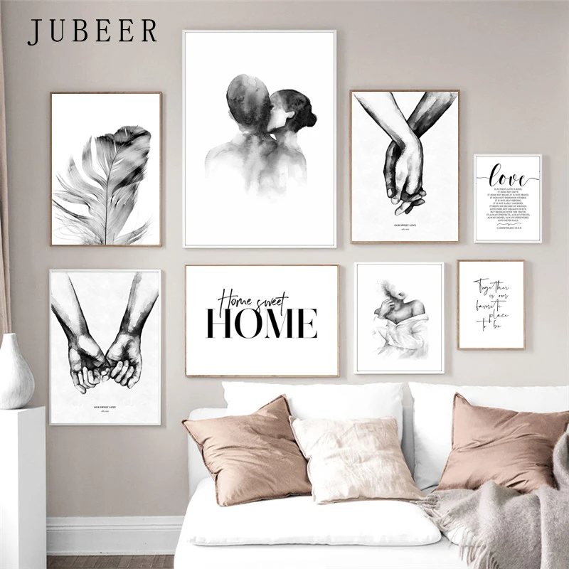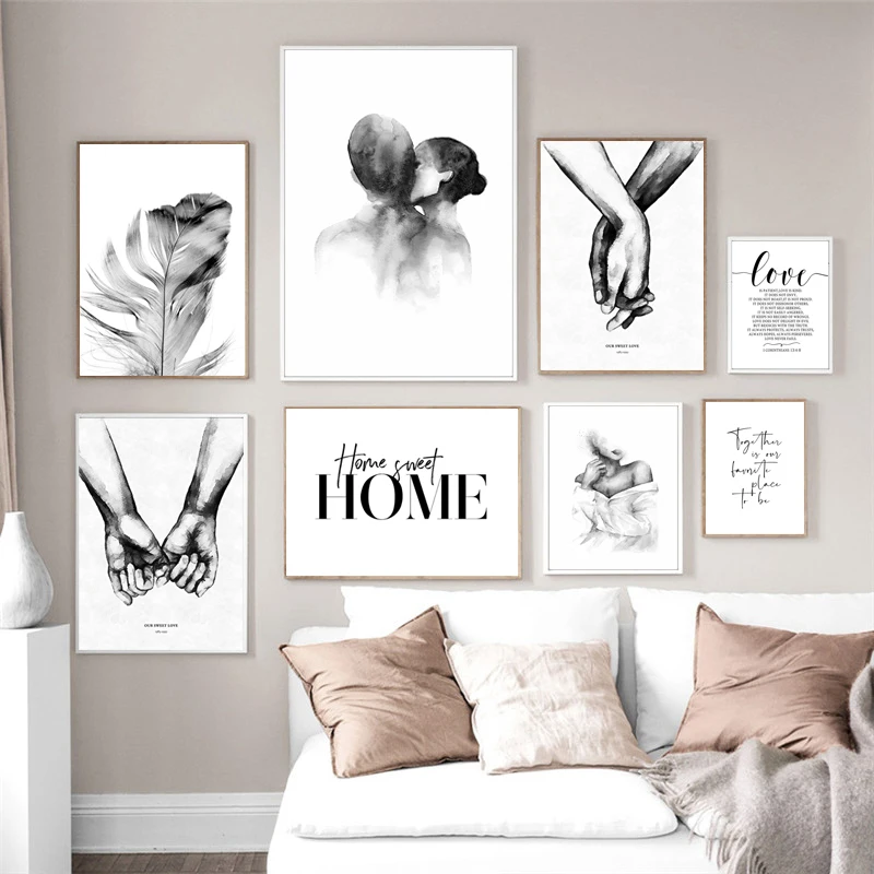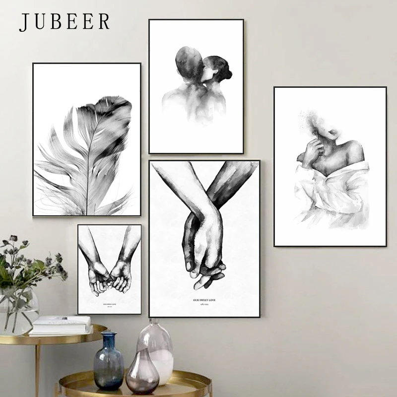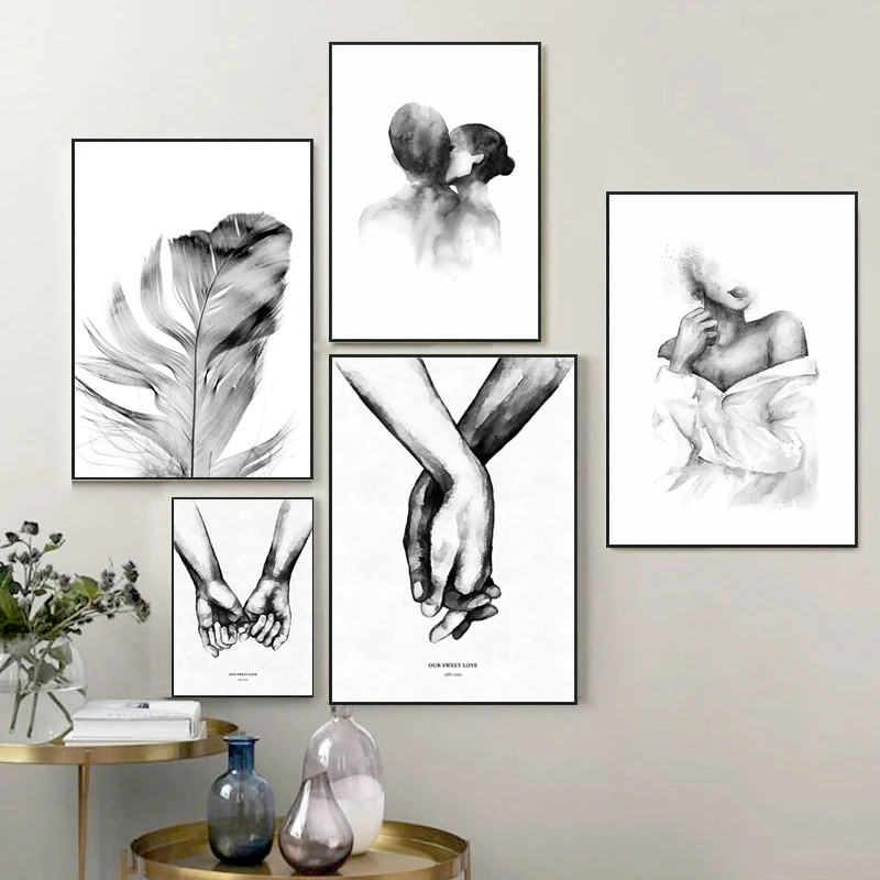 Skandynawska minimalistyczna pocałunek na ramię ręcznie obraz ścienny na płótnie plakat z nadrukiem czarna biała sztuka zdjęcia do salonu Home Decor