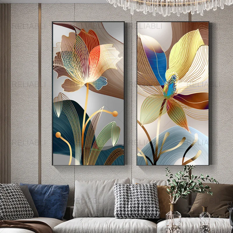 Skandynawski abstrakcyjny obraz przedstawiający kwiat na płótnie malarstwo luksusowe złote linie nowoczesne plakaty i druki obraz ścienny do galerii Home Decor