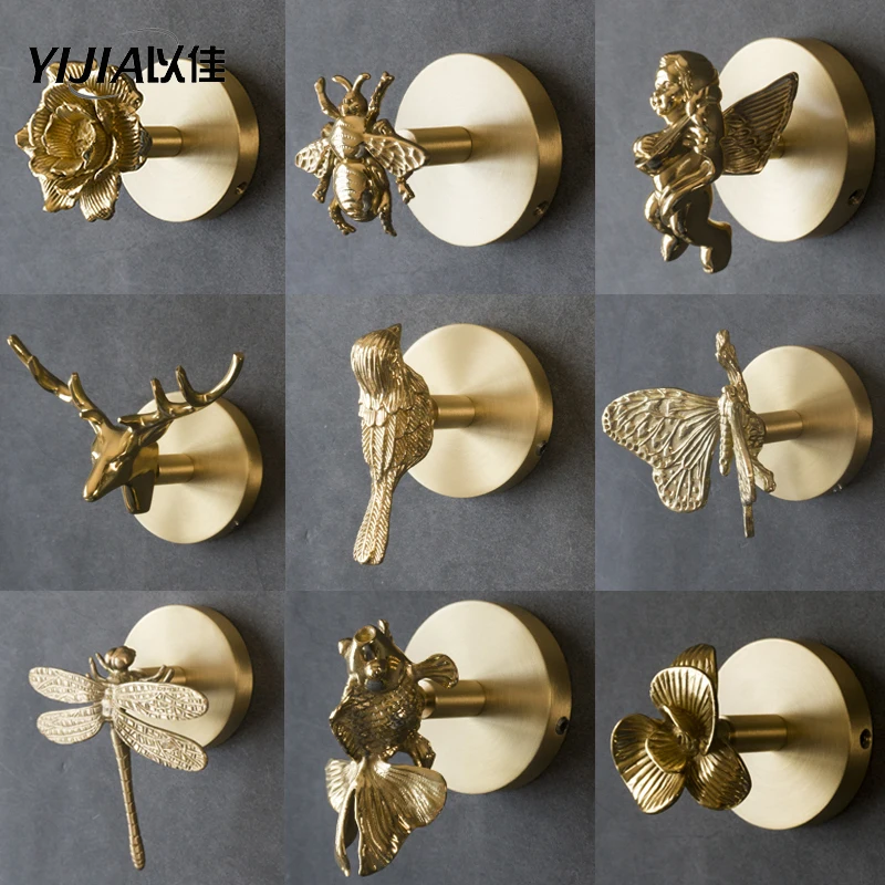 Skandynawski retro mosiądz wzór ze zwierzętami wieszak na płaszcze ganek drzwi łazienka ściana wiszący płaszcz wieszak na płaszcze dekoracja ścienna