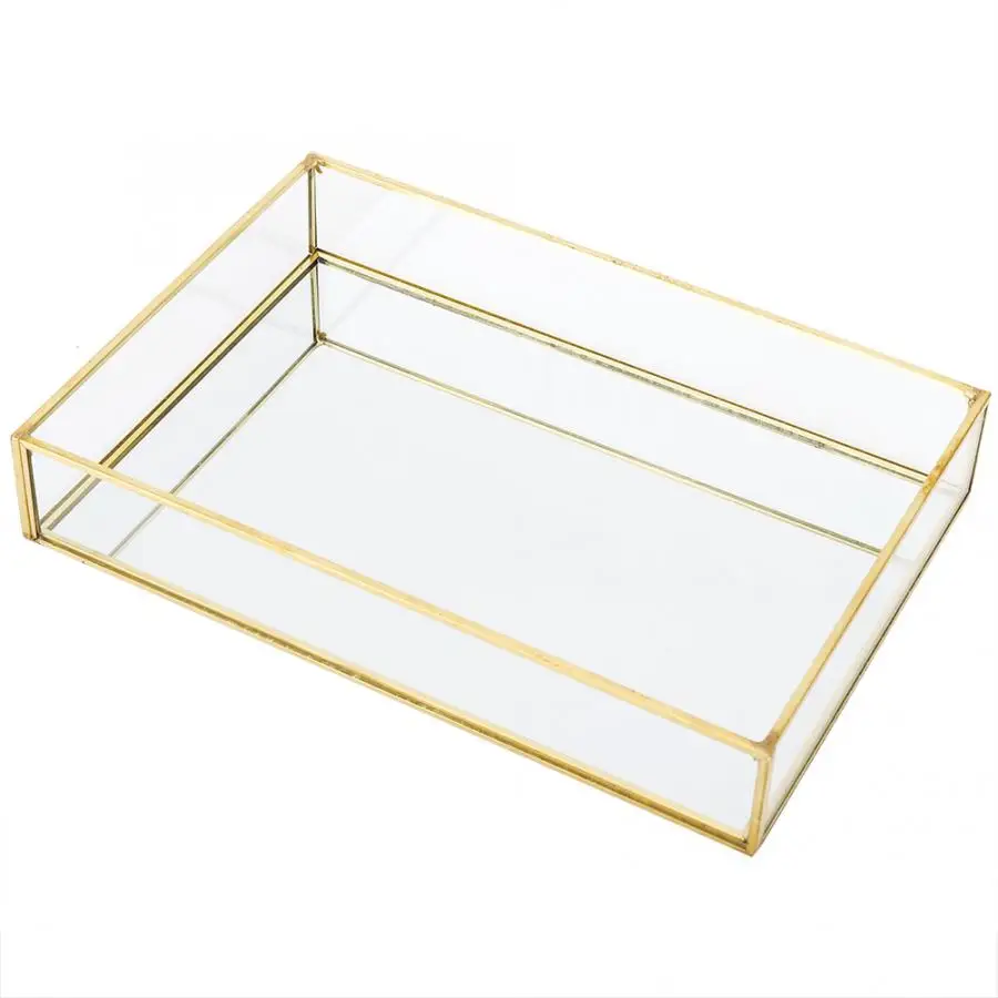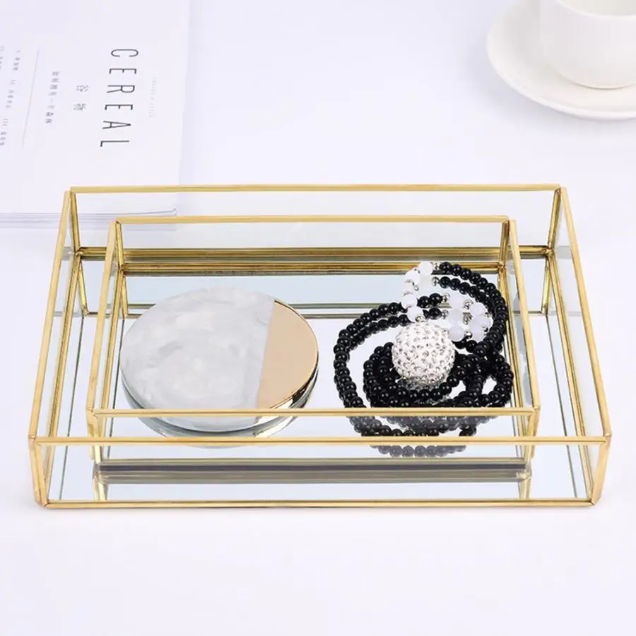 Skandynawski Retro taca do przechowywania złota szkło prostokątne organizator na przybory do makijażu taca talerzyk deserowy wyświetlacz biżuterii коробка для хранения