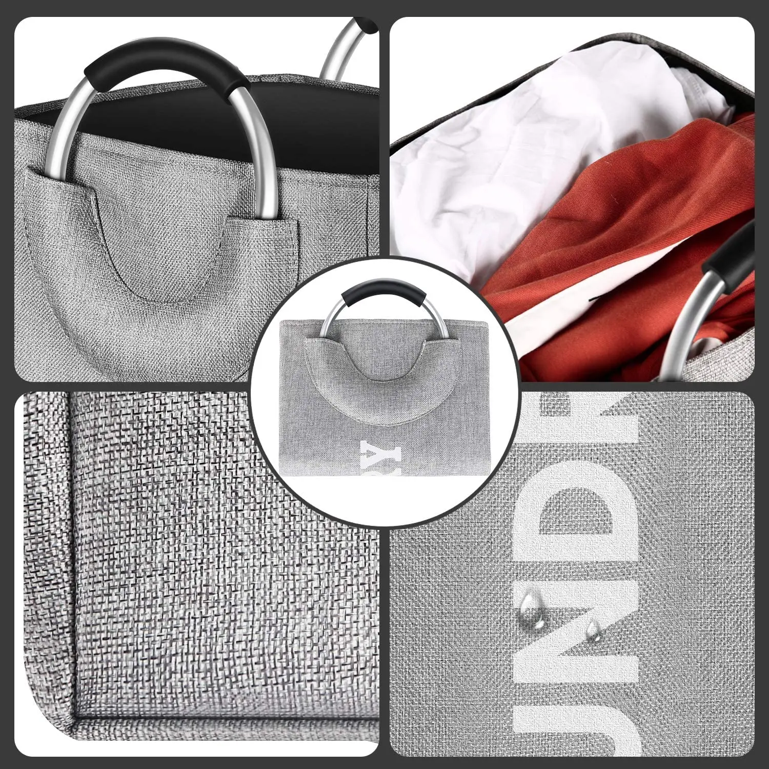 * Wygodne do przenoszenia: wygodne i przenośne: dwa wyściełane uchwyty, mogą złagodzić ból dłoni podczas podnoszenia ciężkich przedmiotów, sprawiają, że worek na pranie jest łatwy do przenoszenia brudnych ubrań po schodach. Uchwyt aluminiowy i kosz na pranie są wzmocnione, aby zapewnić, że nie będzie łatwo rozerwać się podczas ładowania ciężkiego prania. Jest to inteligentne i stylowe rozwiązanie, które zapewnia porządek w szafie i akademiku.