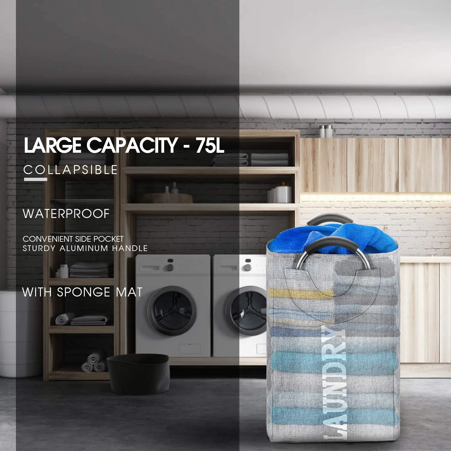 ● Duża pojemność-75L, nasz kosz na bieliznę może przechowywać prawie ubrania przez tydzień na osobę.