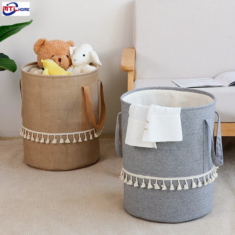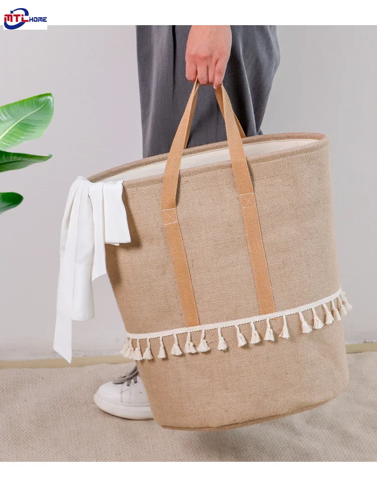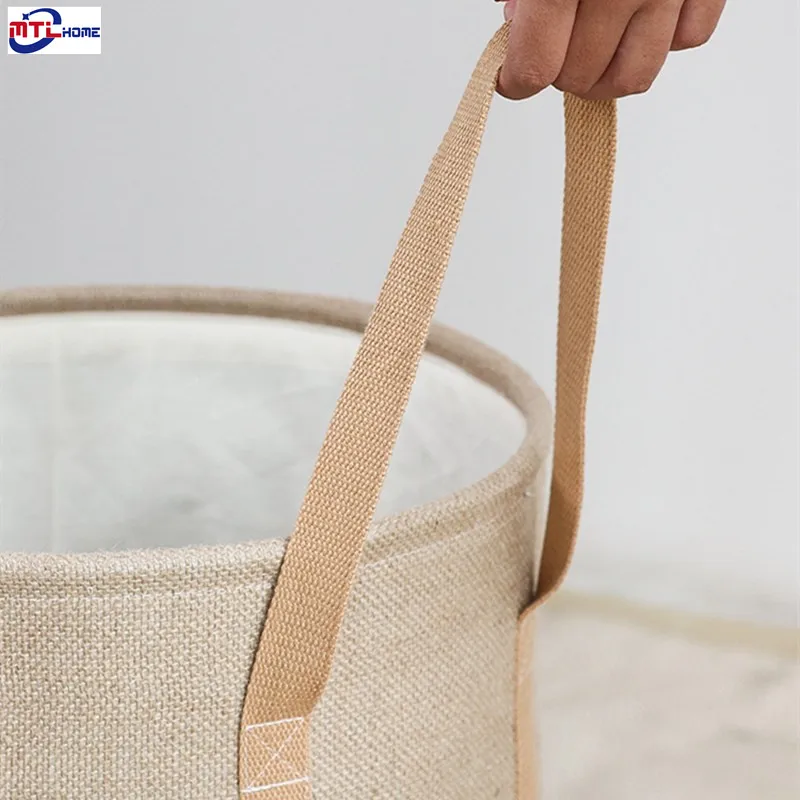 Produkt: pleciony jutowy kosz na pranie bawełniana pościel brudne ubrania składany kosz do przechowywania dzieci zabawki Organizer do suszenia prania dla domu