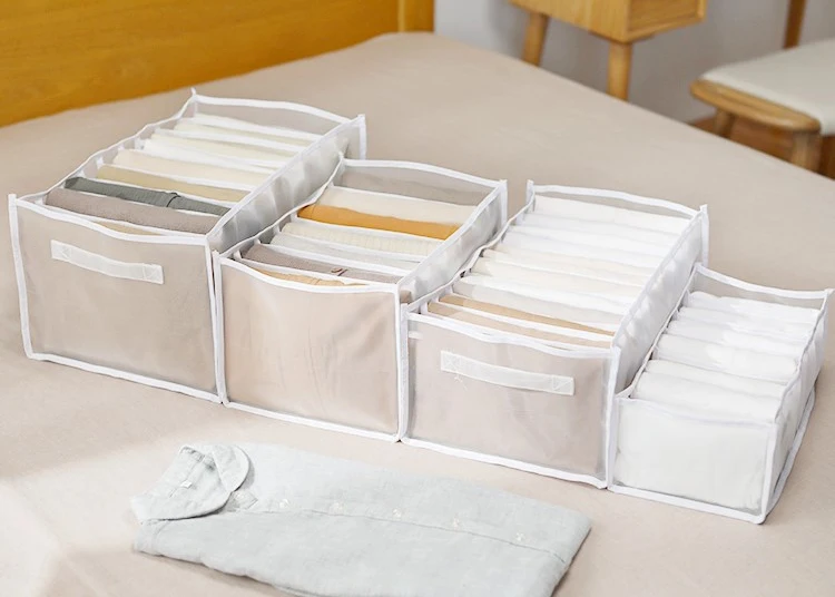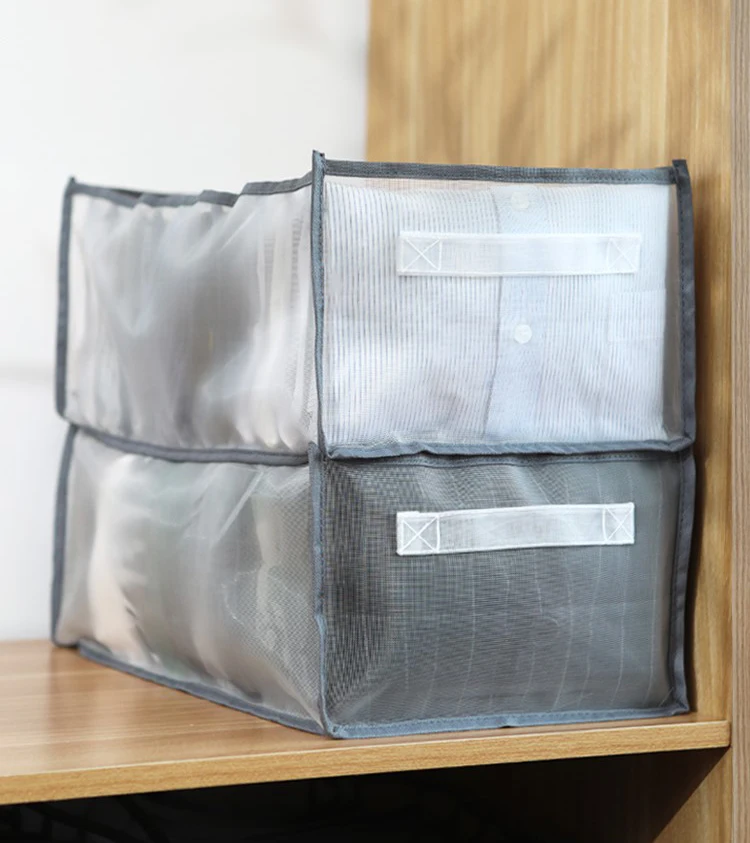 1. Duże 9 siatek (długość 44x szerokość 28x wysokość 22cm): może pomieścić 9 sztuk cienkich swetrów lub grubych spodni.