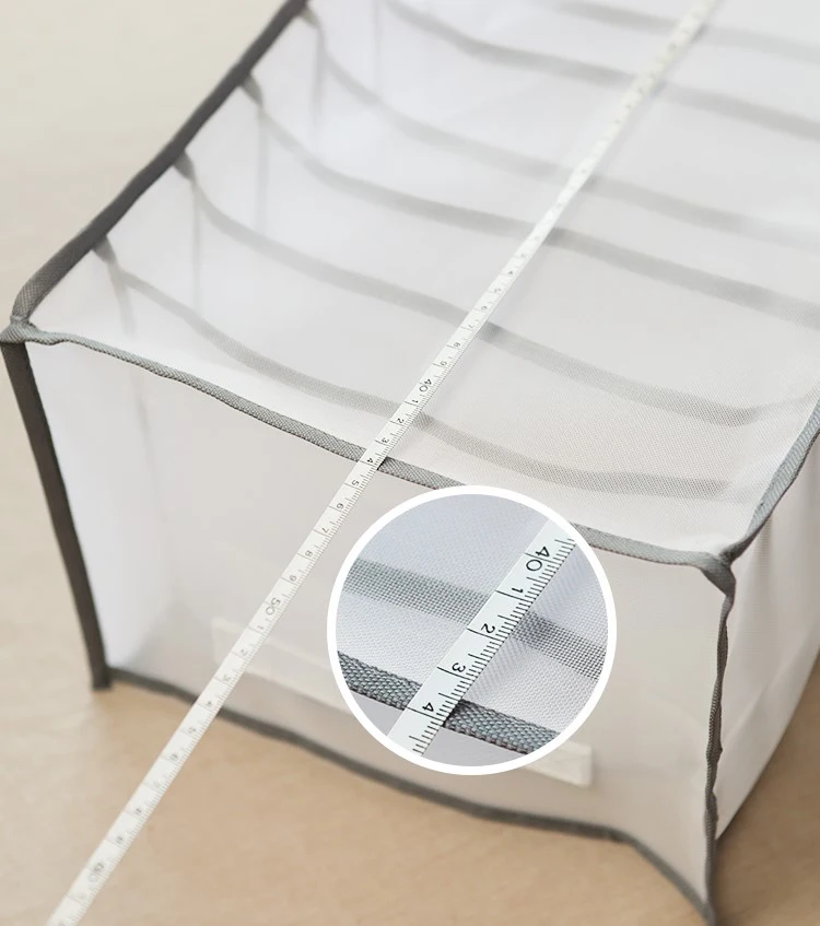 8. Tkanina 7 siatek (długość 35x szerokość 15x wysokość 11cm): można przechowywać 7 sztuk bielizny dla dorosłych lub 14 sztuk bielizny dziecięcej.