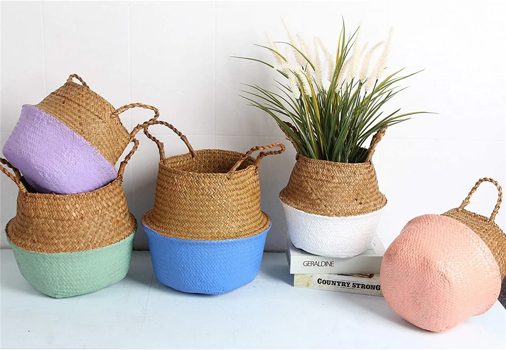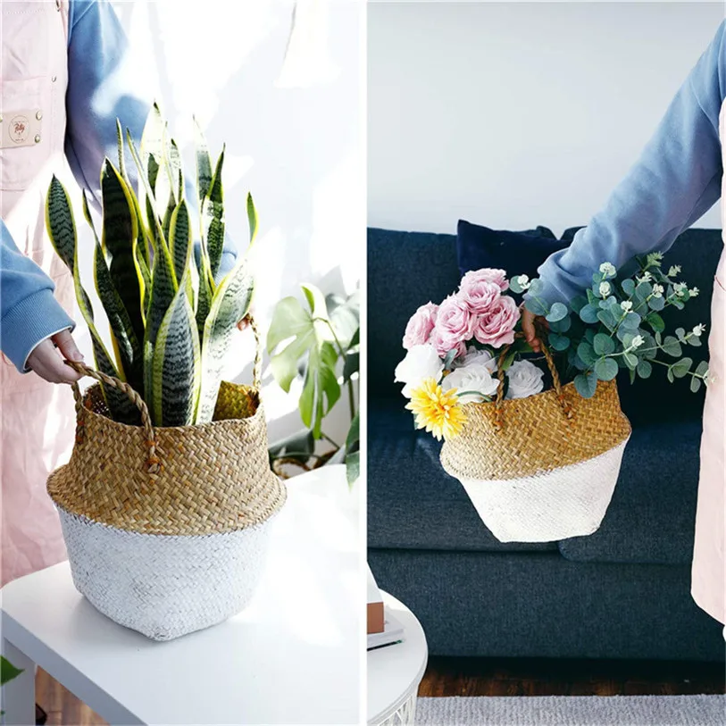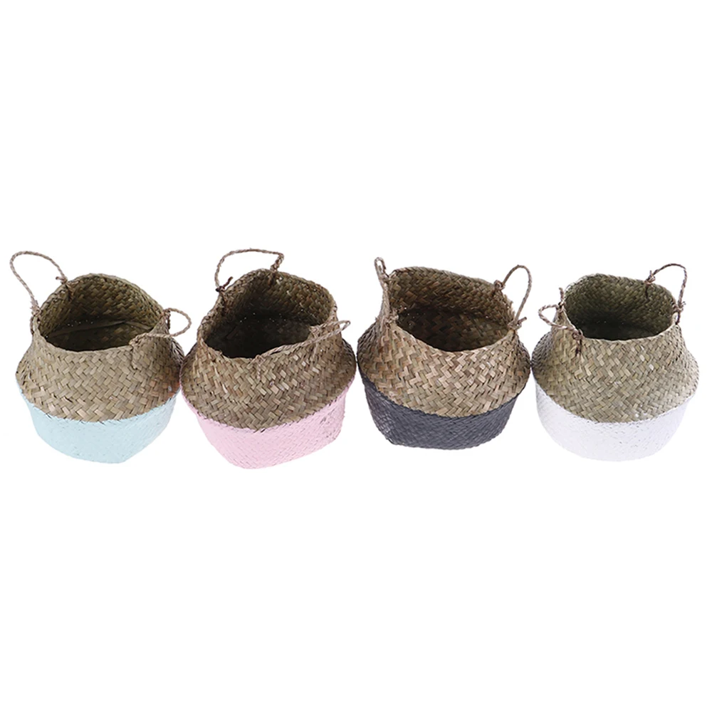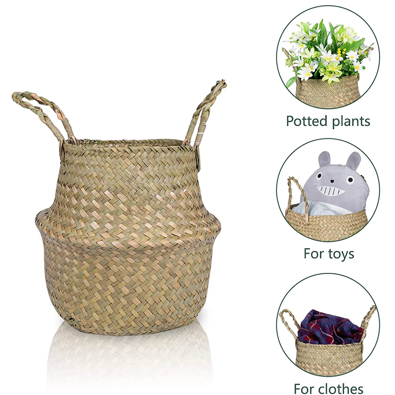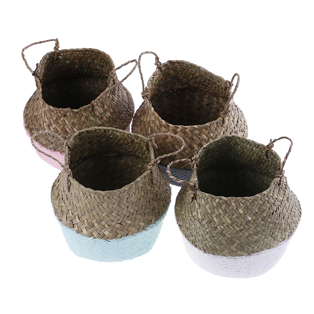 Ręcznie pleciony koszyk strona główna składane Clthoes kosz na pranie naturalny piknik słoma wiklina Rattan trawa morska brzuch kwiat ogrodowy roślina doniczkowa kosz