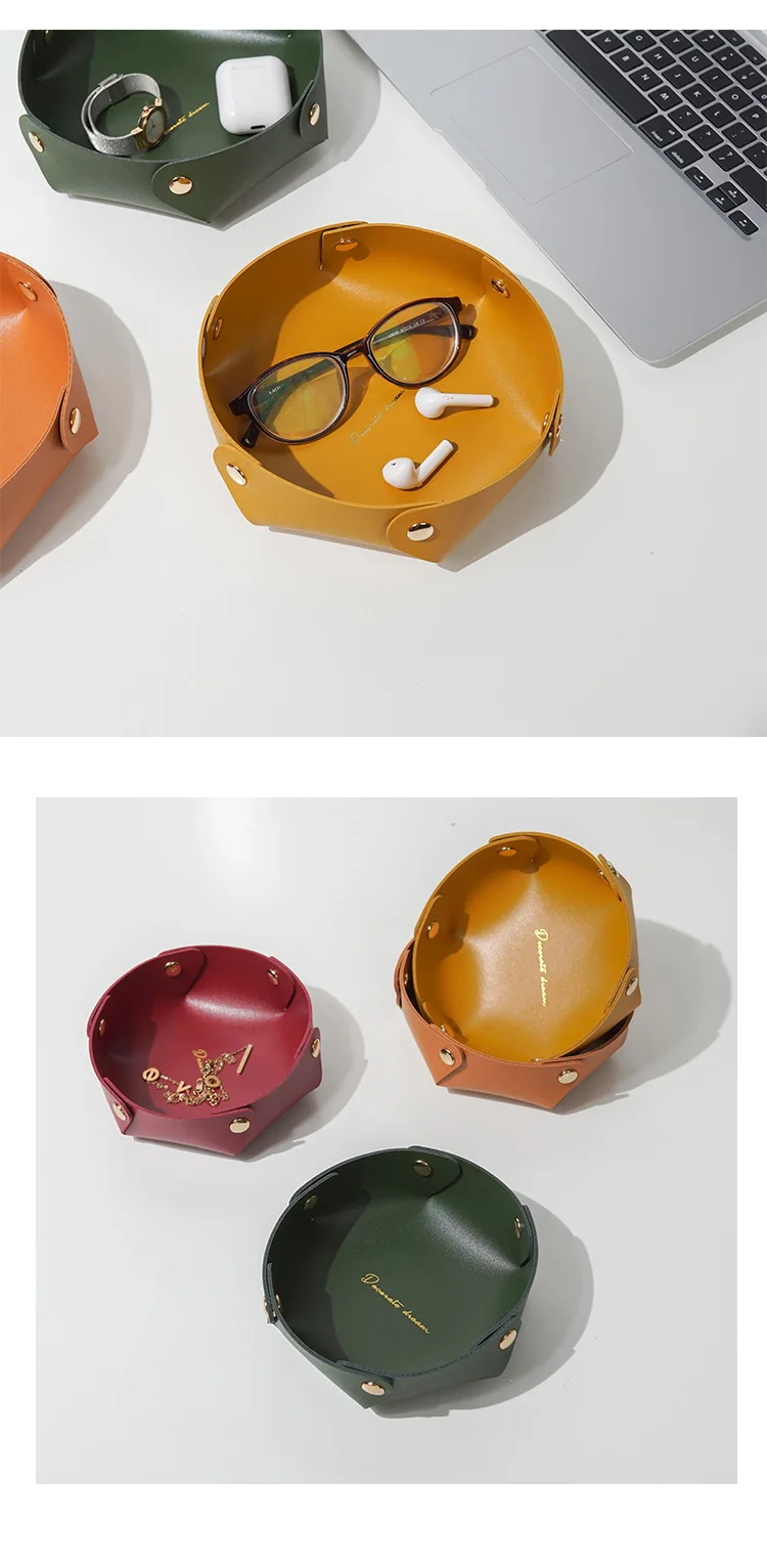 Skóra PU schowek na biurko klucz płyta kosmetyki biżuteria ganek przechowywanie rozmaitości pudełko do przechowywania płyta składany schowek hurtownia