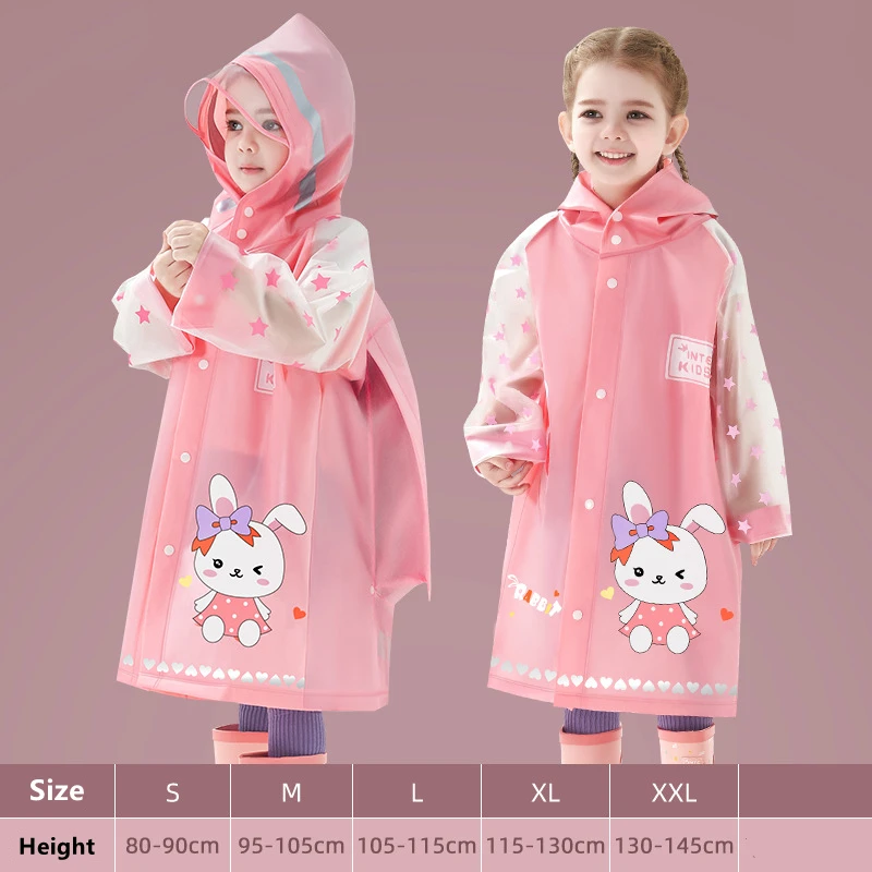 Rozmiar M płaszcz przeciwdeszczowy długość 61 cm, rękaw 48 cm, klatka piersiowa 96 cm, odpowiedni dla dzieci o wzroście 95-105 cm