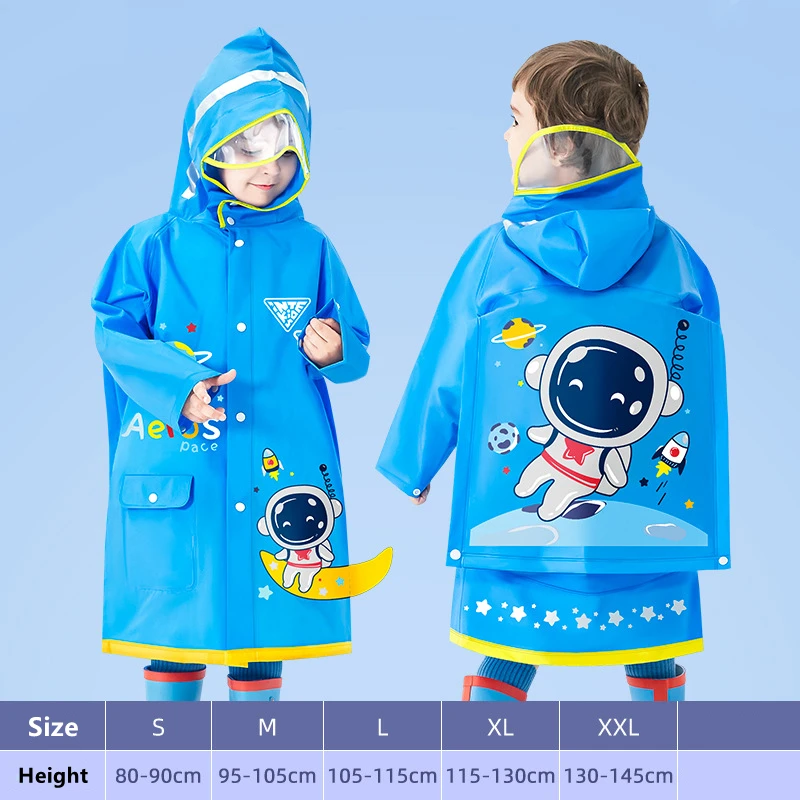 Rozmiar S płaszcz przeciwdeszczowy długość 58 cm, rękaw 46 cm, klatka piersiowa 92 cm, odpowiedni dla dzieci o wzroście 85-95 cm