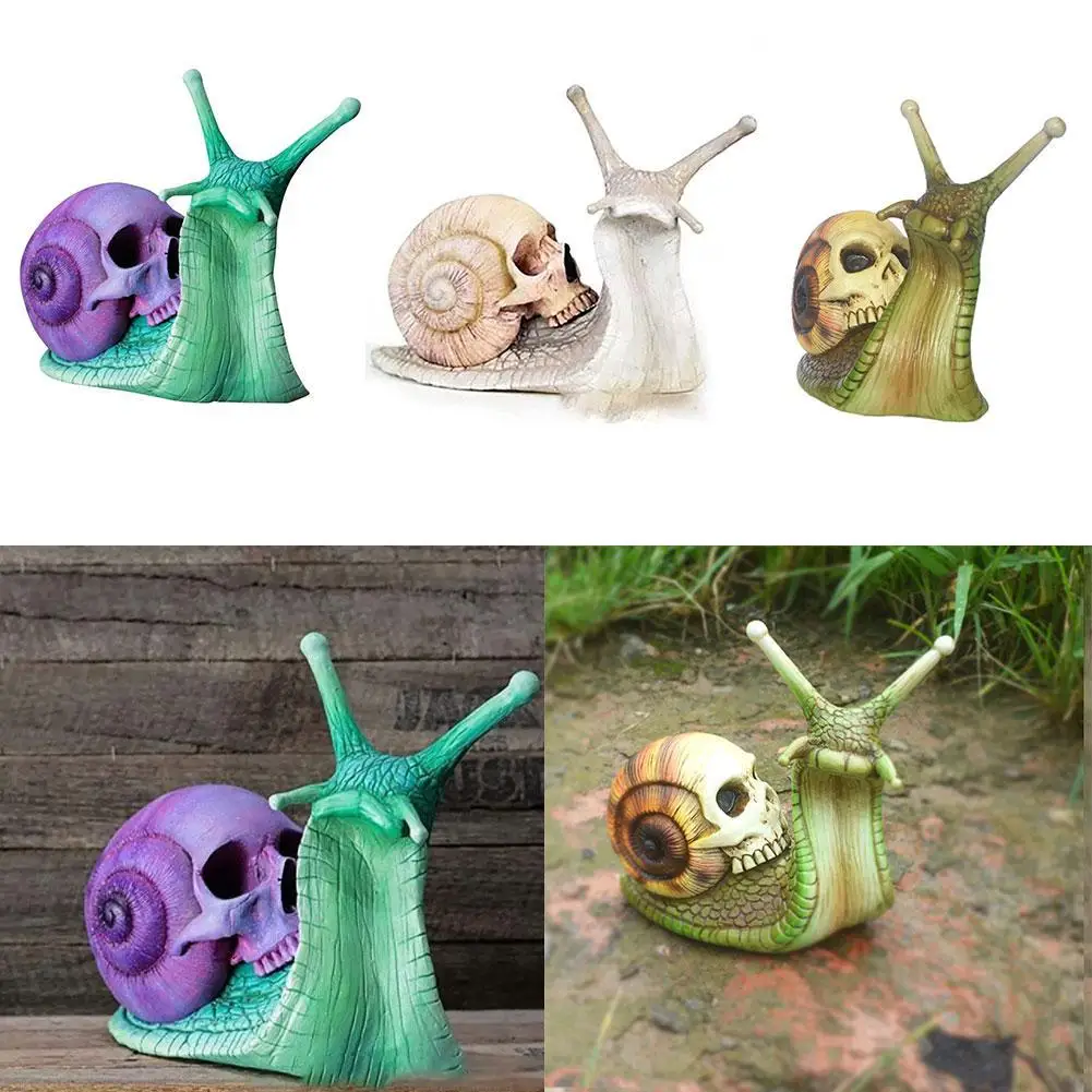 Ślimak czaszka rzeźba gotycka dekoracja ślimak statua Patio Halloween figurka rzemiosło szkielet z horroru ozdoba na biurko wystrój