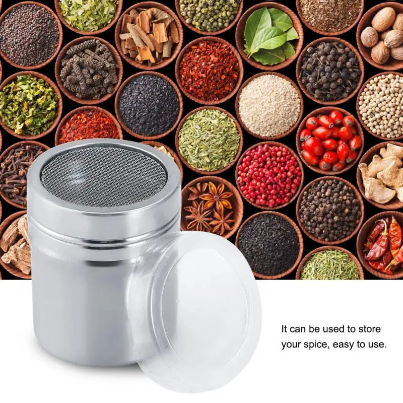 Słoik na przyprawy ze stali nierdzewnej Shaker Pot czekolada cukier mąka kakaowa filtr do kurzu cynamon w proszku zbiornik narzędzia kuchenne