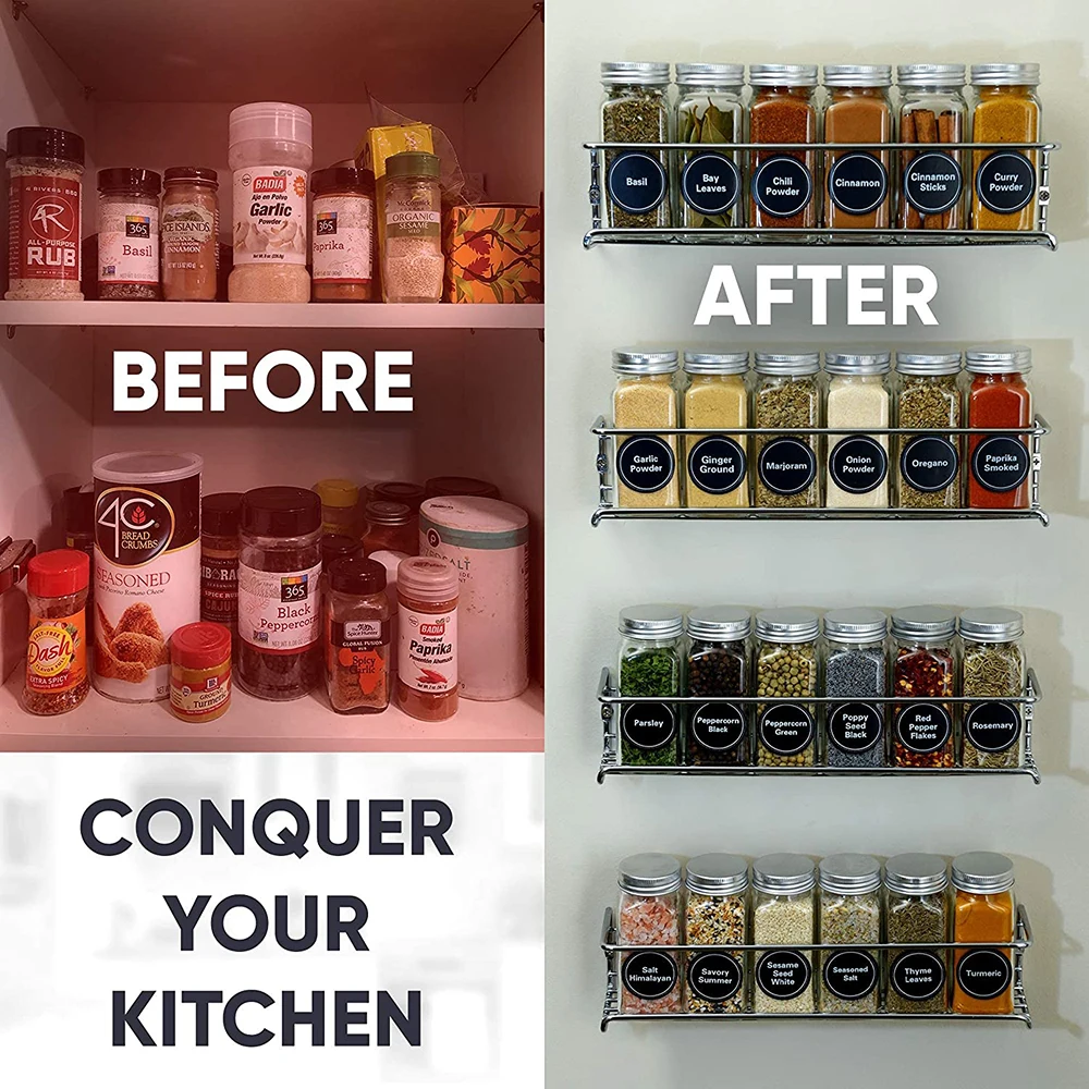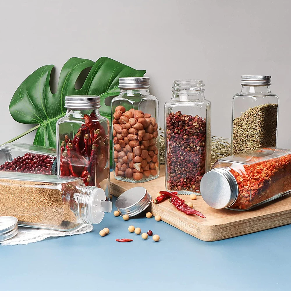 Łatwy w użyciu i zaoszczędzić miejsce: srebrne, hermetyczne metalowe zakrętki i zatrzaskowe nakładki mogą pomóc dłużej przyprawom, a regularne usta słoików ułatwiają napełnianie przyprawy. Kwadratowe słoiki są idealne do przechowywania w szufladzie, pomagając w organizowaniu przypraw i oszczędzając miejsce na blacie.