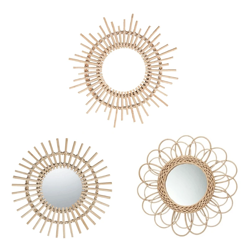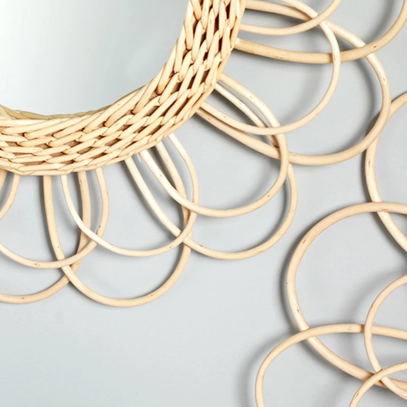 Słońce kształt lustro ozdobne Rattan innowacyjna artystyczna dekoracja okrągłe lustro do makijażu opatrunek łazienka ściana lustro wiszące