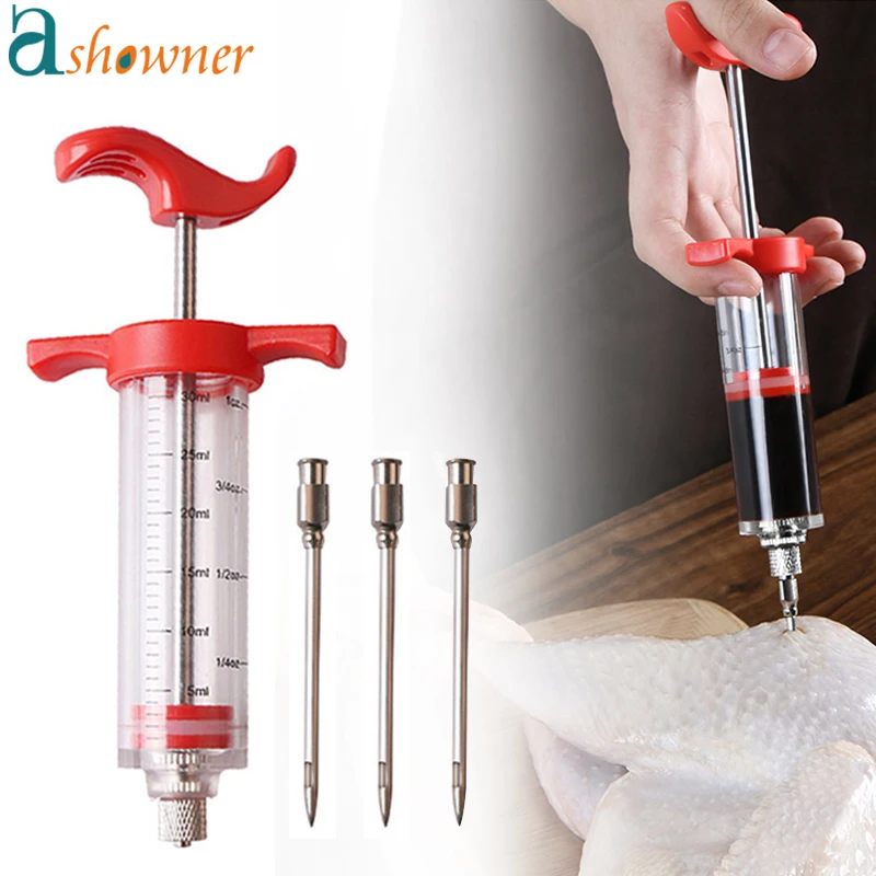 Smak igły mięso na grilla strzykawka wtryskiwacz do marynaty stek wieprzowy mięso sosy strzykawki z 3 igły ze stali nierdzewnej narzędzia kuchenne