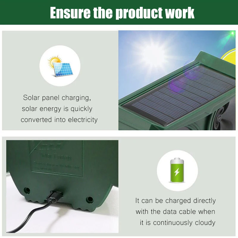 1. Automatyczne ładowanie energii słonecznej na zewnątrz, wyposażone w kabel ładujący, złącze USB, może być używane do ładowania w pochmurne dni. Może być używany normalnie w deszczowe dni.