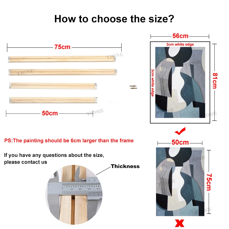 (Upewnij się, że twój obraz z dodatkową krawędzią 3cm, rozmiar płótna powinien być większy niż rama drewniana o rozmiarze co najmniej 6cm)