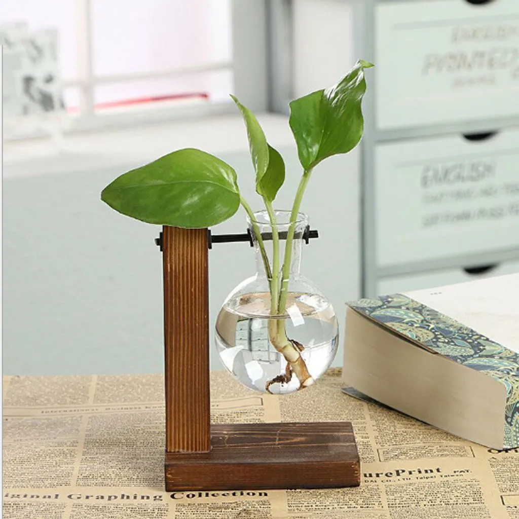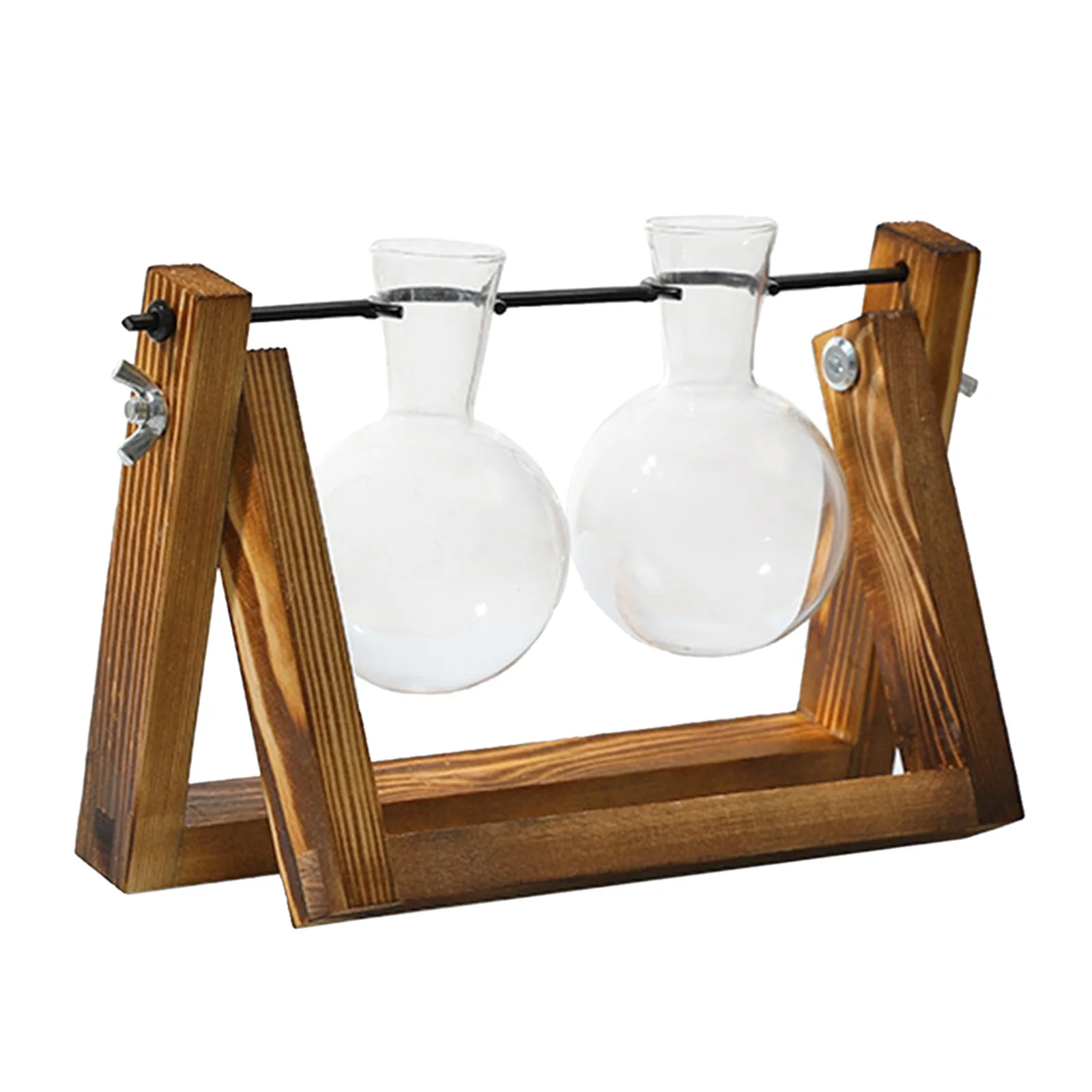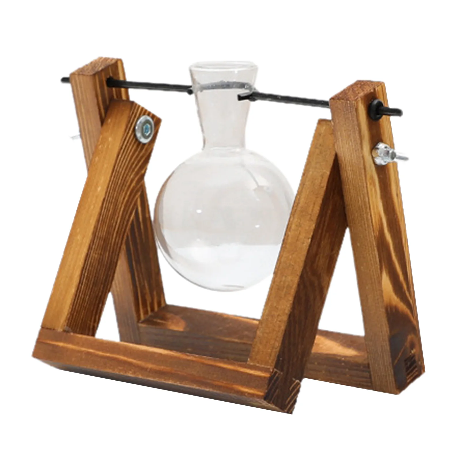 Dekoracja-Mini zlewka hydroponic vintage wazon design wazon dla hodowcy roślin z solidnym drewniany stojak i metalowy uchwyt, piękny kształt, najlepsze przedmioty dekoracyjne na biurko.