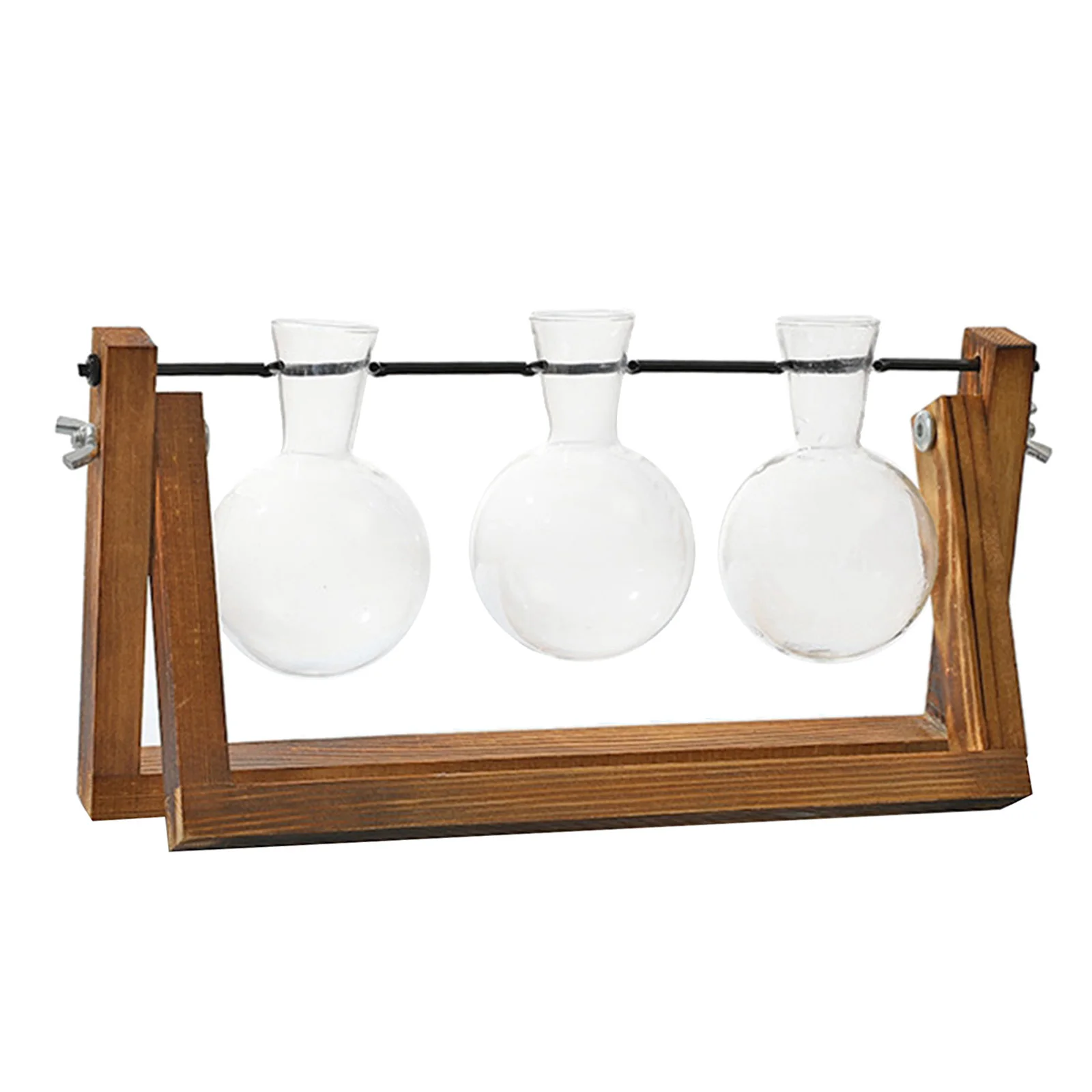 Drewniany stojak-hydroponiczny wazon vintage wyposażony jest w stojak wykonany z naturalnego litego drewna, niezawodny, stabilny i trwały.
