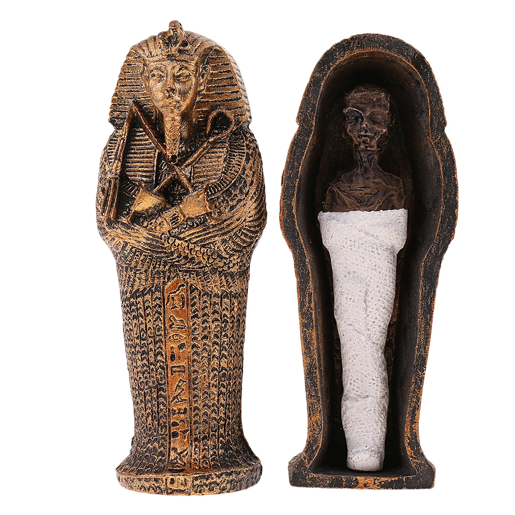 Starożytny egipski egipt trumna z mumią figurka rzemiosło żywiczne dekoracja kolekcjonerska Home Decor miniaturowe rzemiosło kolekcje