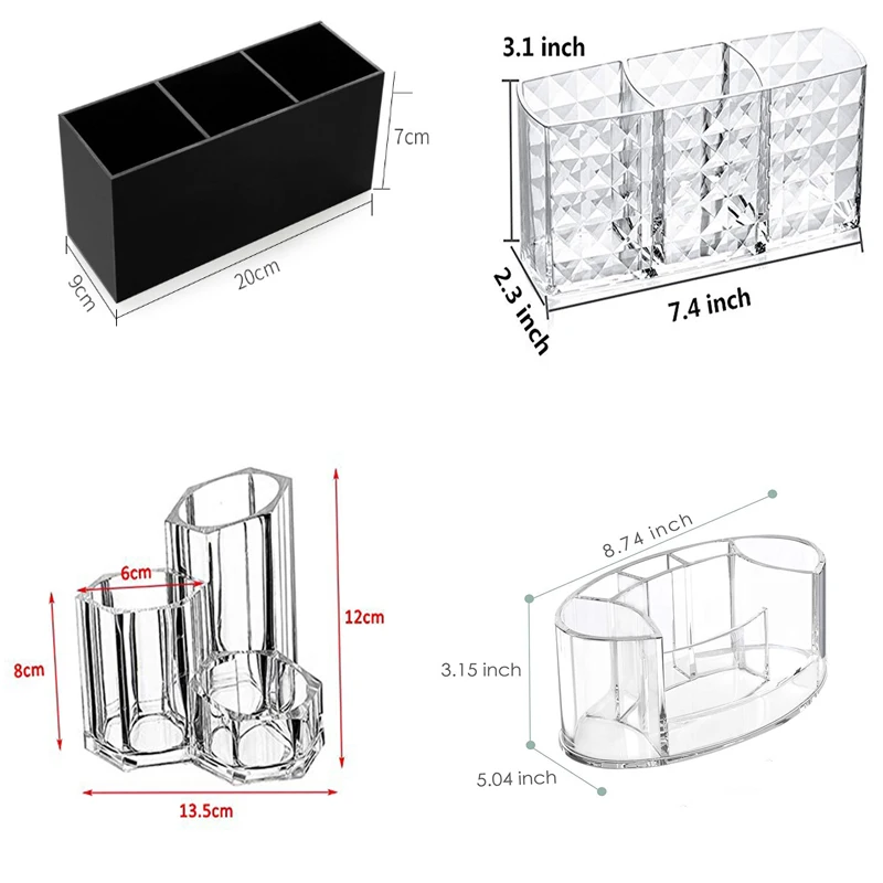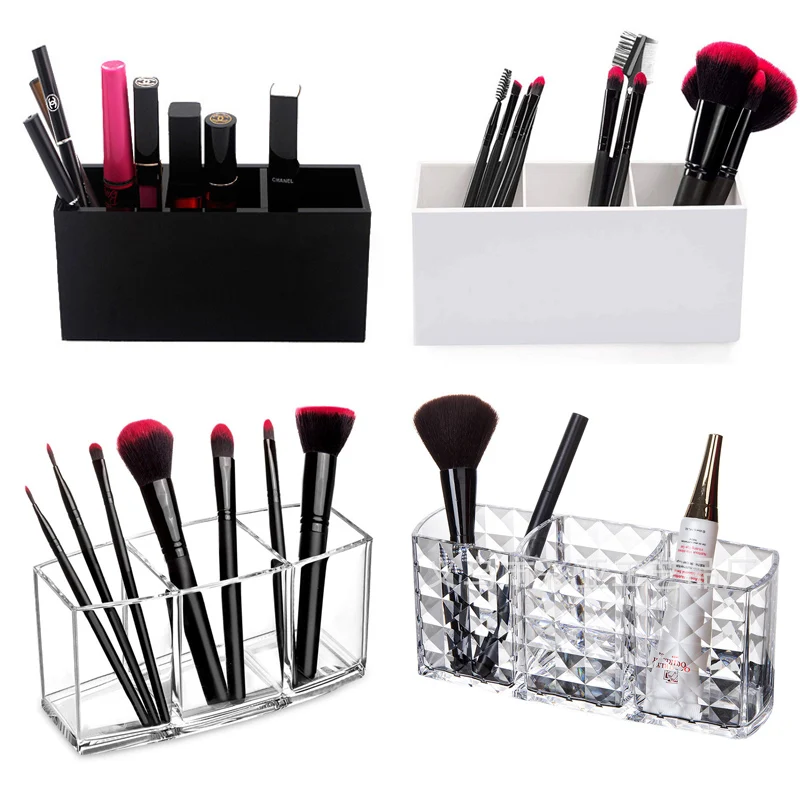 Stojak na pędzle do makijażu, organizator na przybory do makijażu, kosmetyki, schowek, szminka, ołówek do brwi, stojak, akryl, przezroczysty, plastikowe pudełko,