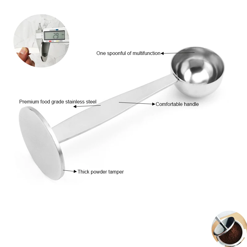 Miarka i sabotaż w jednym połączeniu stempla espresso i łyżka z miarką do kawy, miło mieć dwa narzędzia w jednym, więc zajmuje mniej miejsca na blacie.