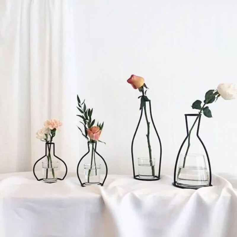Strona główna dekoracja żelazo Retro linia kwiaty wazon zakład metalurgiczny uchwyt nowoczesny solidny wystrój domu Nordic style wazon żelaza