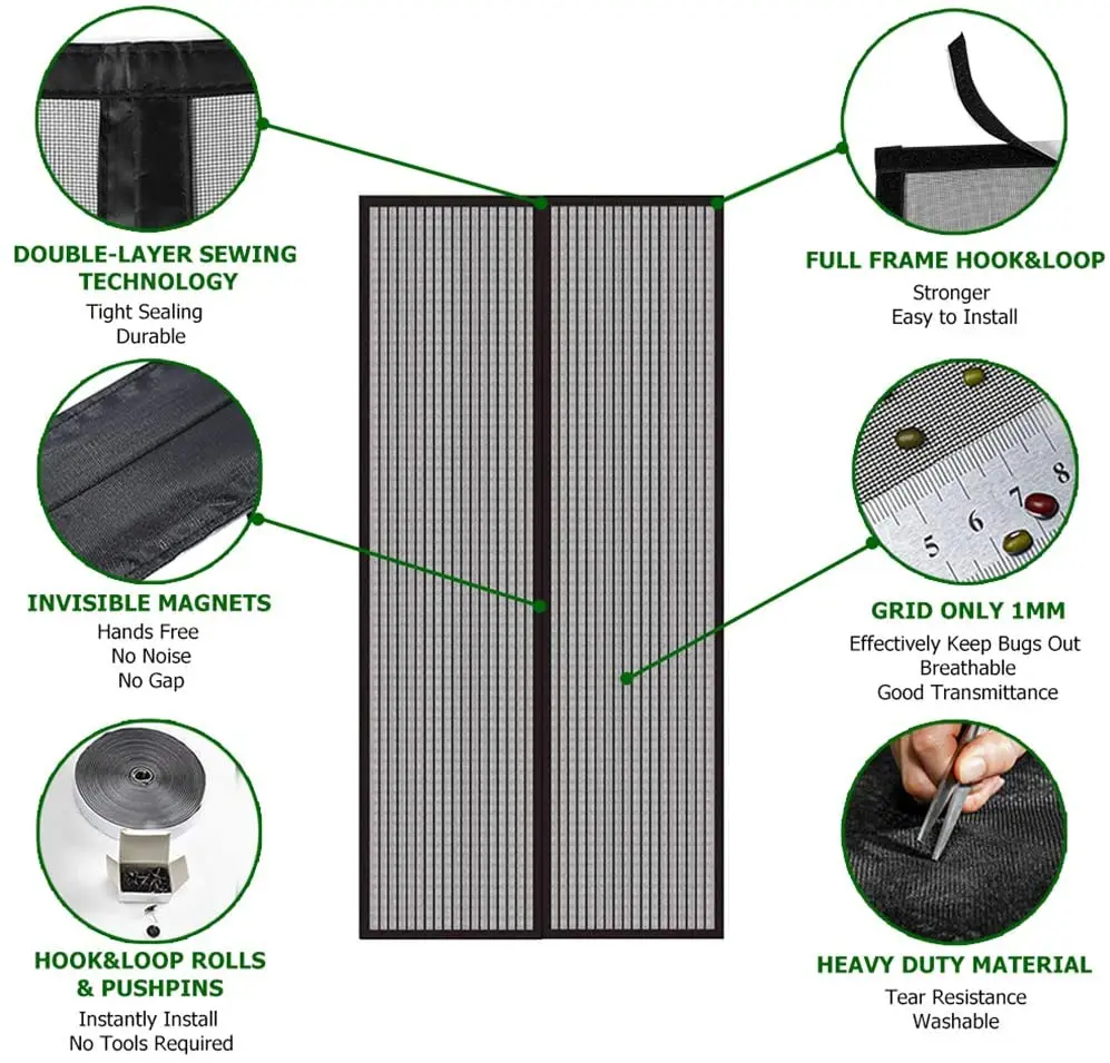 Całkowicie zapobiegaj komarom, pająkom, ćmom, muchom, robakom i innym owadom latającym wejść do pokoju.
