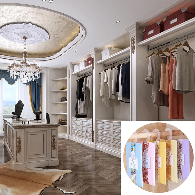 01. Konstrukcja do zawieszenia szafa saszetka Zapach może trwać przez długi czas 02. Dostępne są różne zapachy. Jaśmin, lilia, cytryna, ocean, róża, lawenda