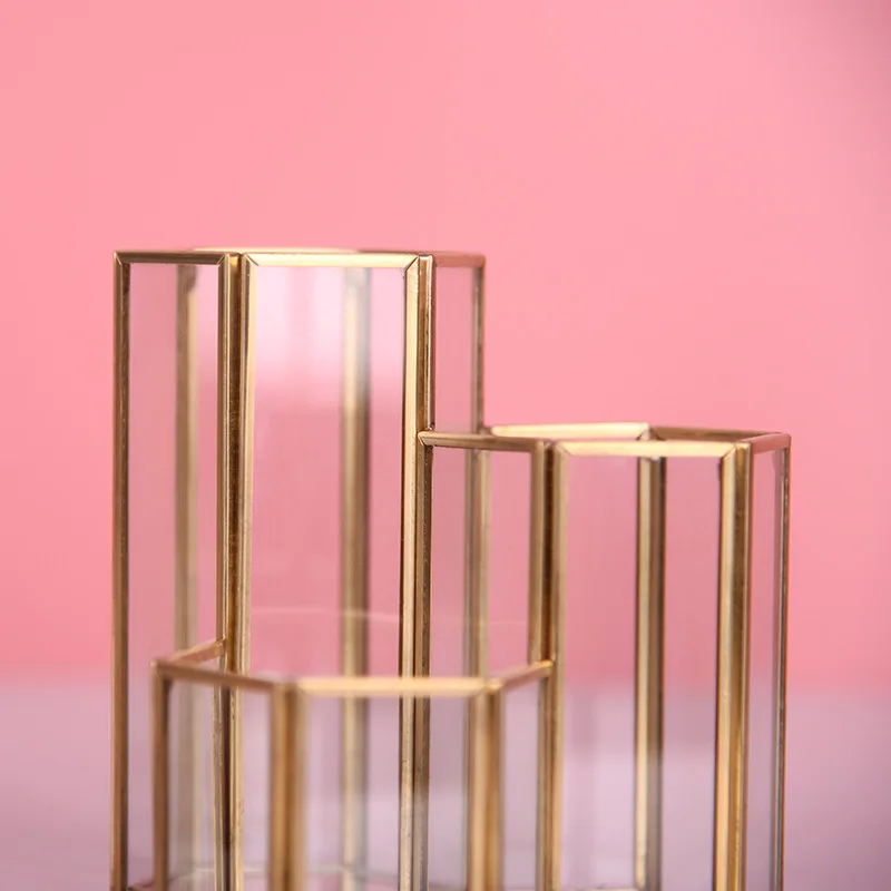 Szklana miedź sześciokątna kompozytowa obsadka do pióra pędzel do makijażu szklane pudełko wielofunkcyjny Organizer na biurko akcesoria biurowe