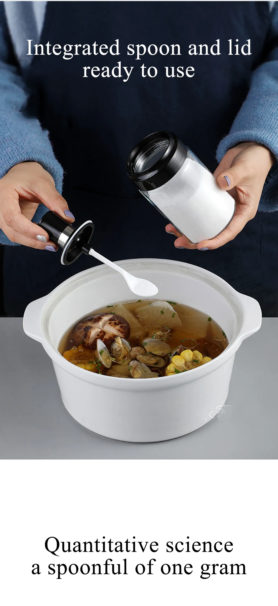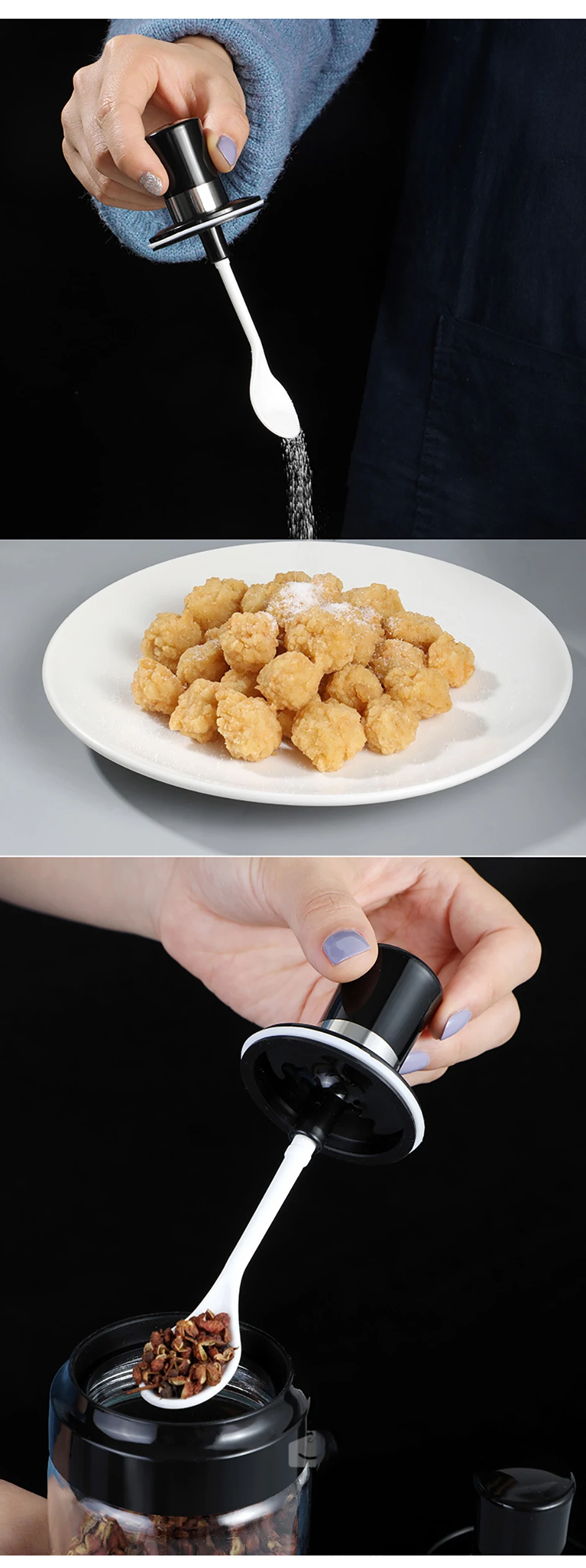 1. Odporna na wilgoć pokrywa łyżki jest zintegrowana z pojemnik na przyprawy, co jest wygodne do podjęcia i zaoszczędzić czas i wysiłek.