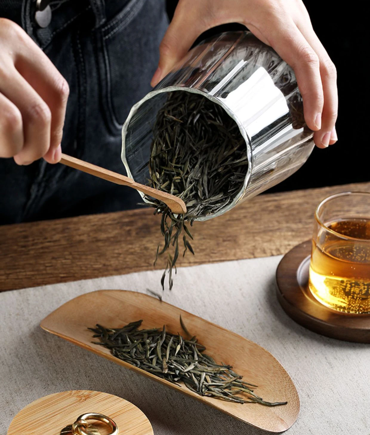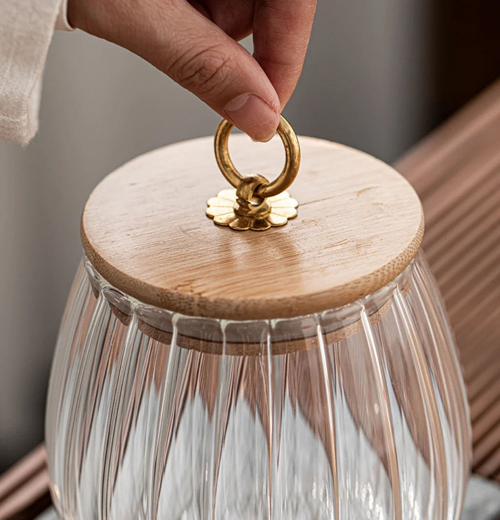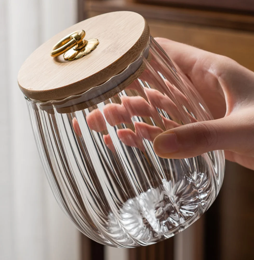 Zachowaj ziarna kawy, torebki herbaty, cukru lub innych produktów spożywczych w pięknym szklanym kanister z bambusowa pokrywka od Auvid.