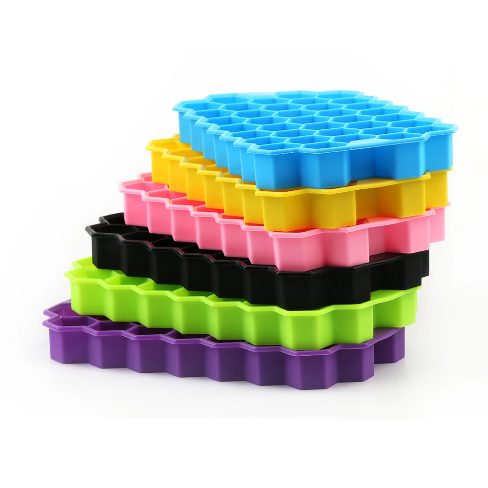 Tacki na kostki lodu o strukturze plastra miodu wielokrotnego użytku silikonowa forma kostki lodu BPA wolna kostkarka do lodu z wymiennymi pokrywkami