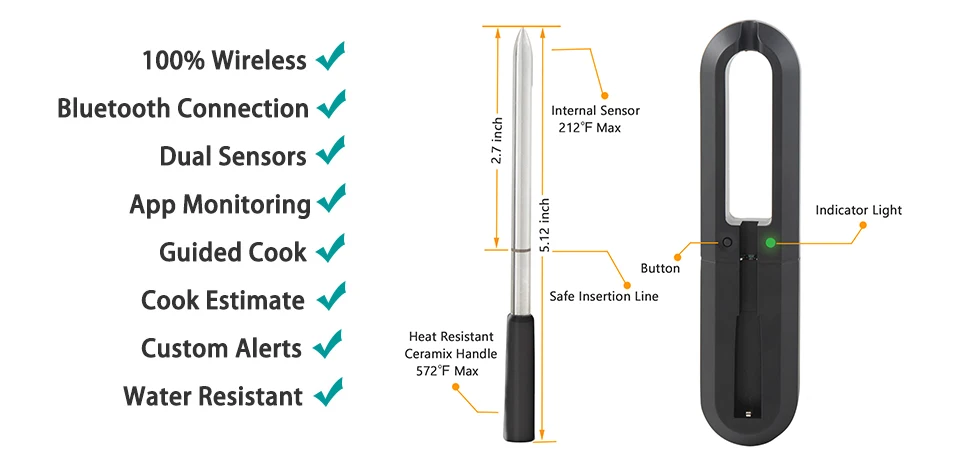 Food (100℃/212℉) , Internal(300℃/572℉)
