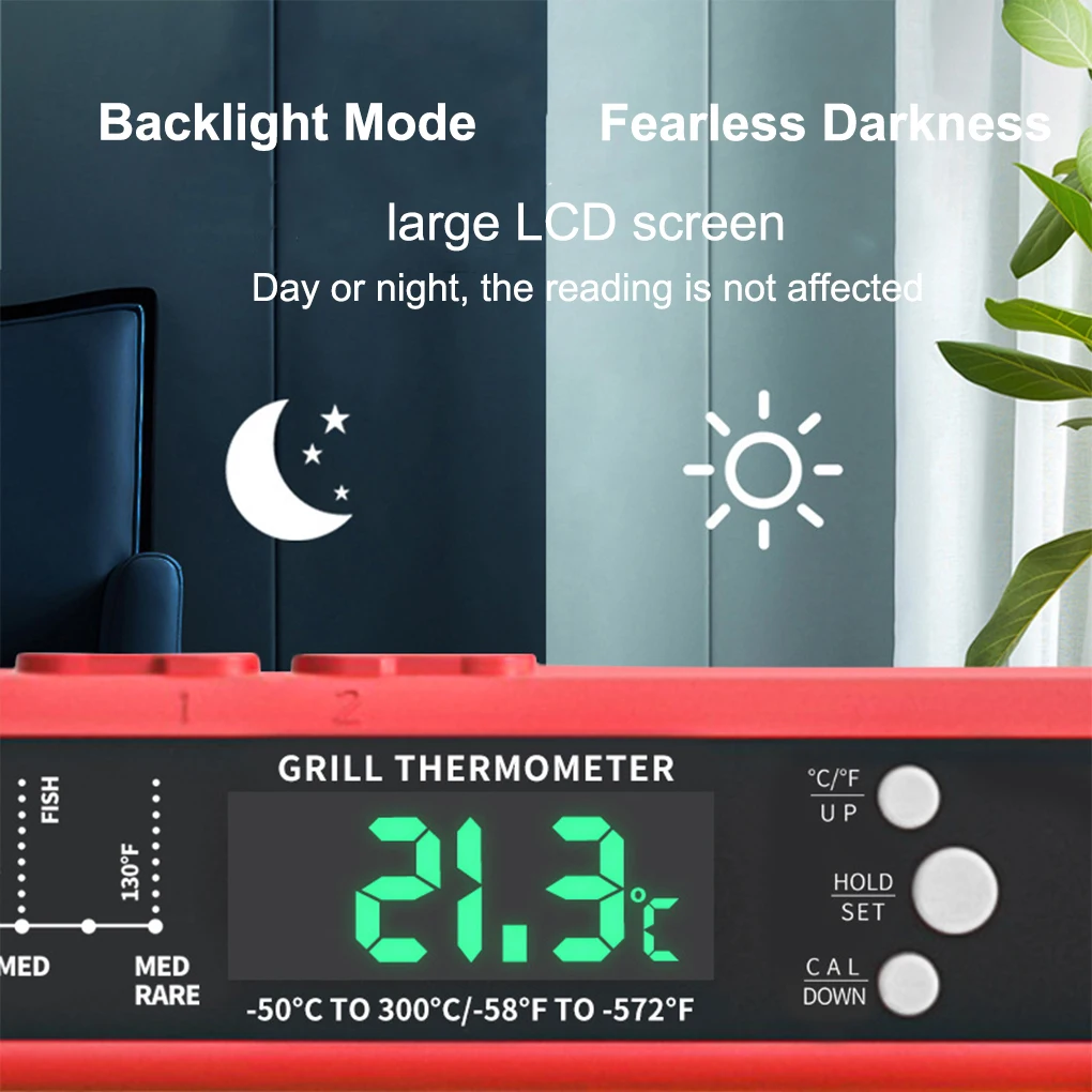 LCD: ten termometr do żywności wykorzystuje wyświetlacz LCD, który może natychmiast zmierzyć temperaturę, a wyświetlacz temperatury jest wyraźniejszy i dokładniejszy.
