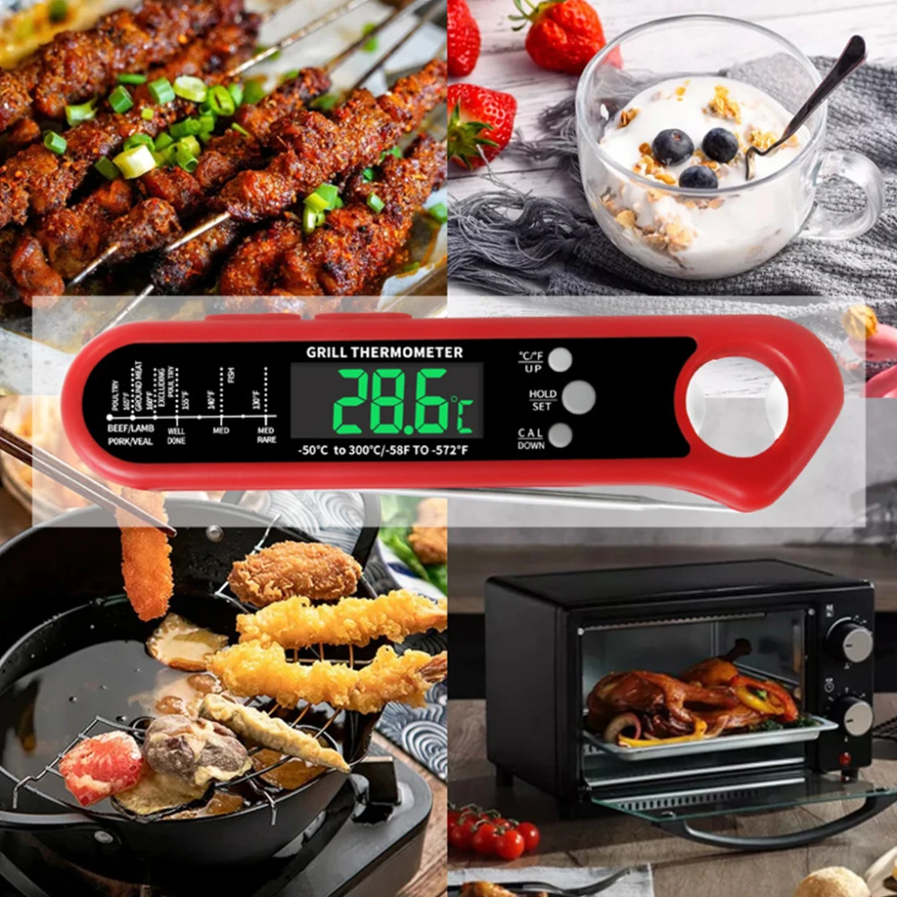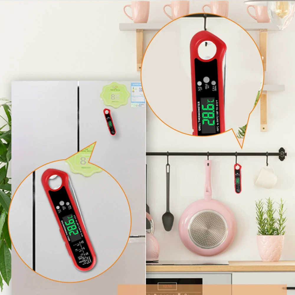 Złożony: sondę termometrów żywności LCD można złożyć, co czyni go bardziej przenośnym w użyciu podczas wyjmowania.