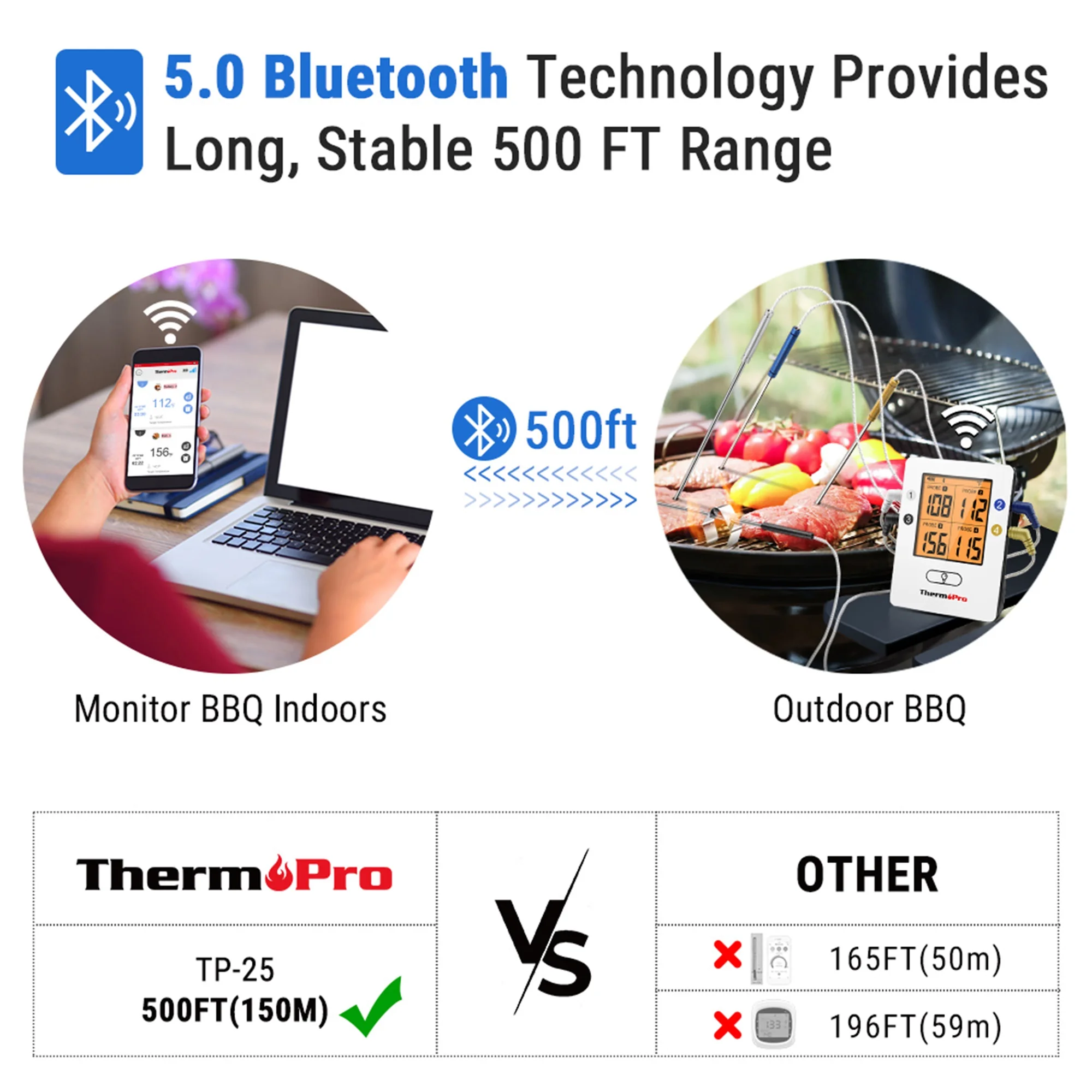 TP25 to 150M inteligentny, bezprzewodowy termometr do gotowania podłączony przez Bluetooth.
